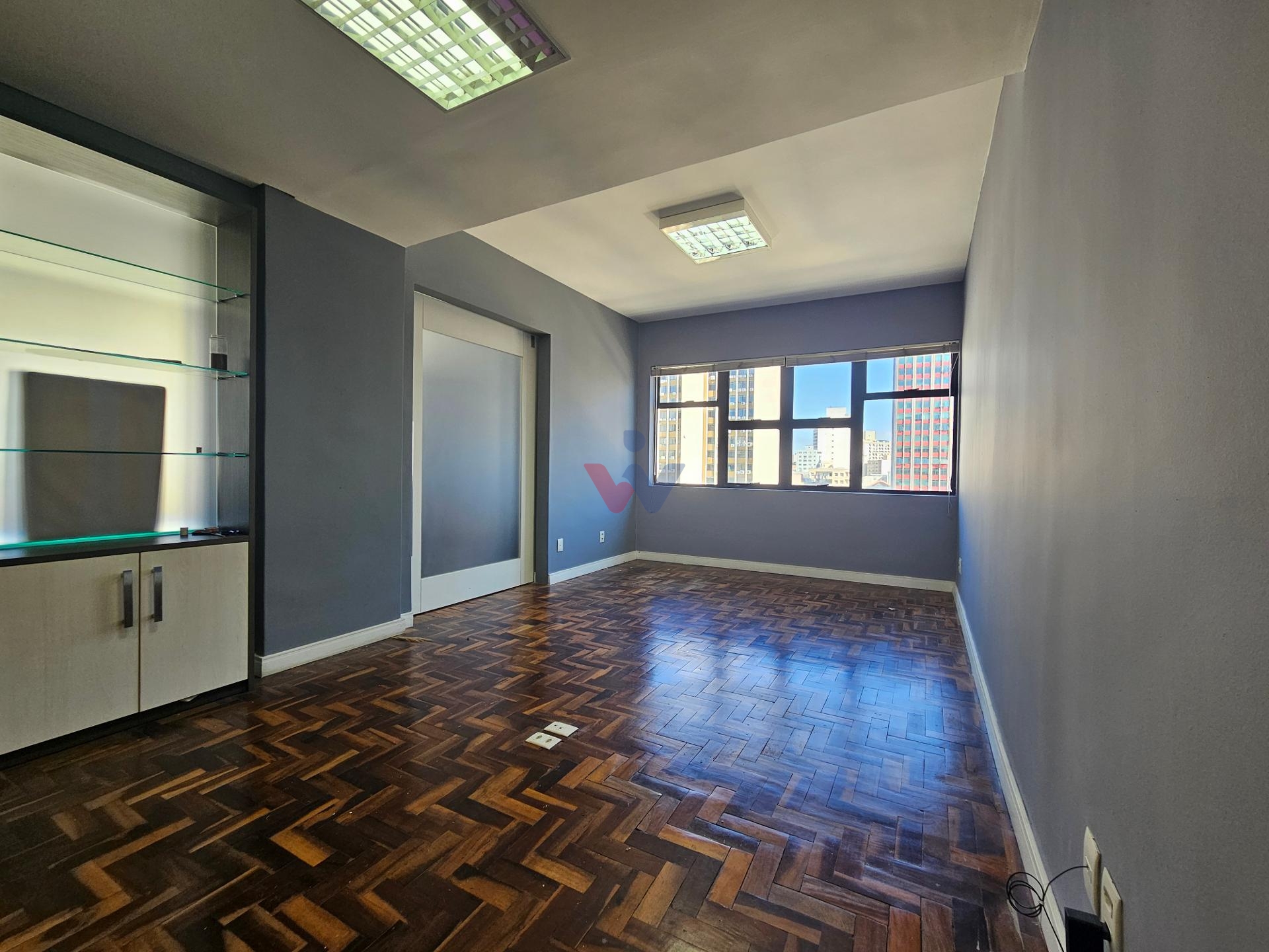 Ótima sala comercial com 45,77m² estrategicamente dividida com uma porta de correr permitindo multifuncionalidade e otimização do espaço, podendo ser utilizada como uma única sala ou em duas partes.