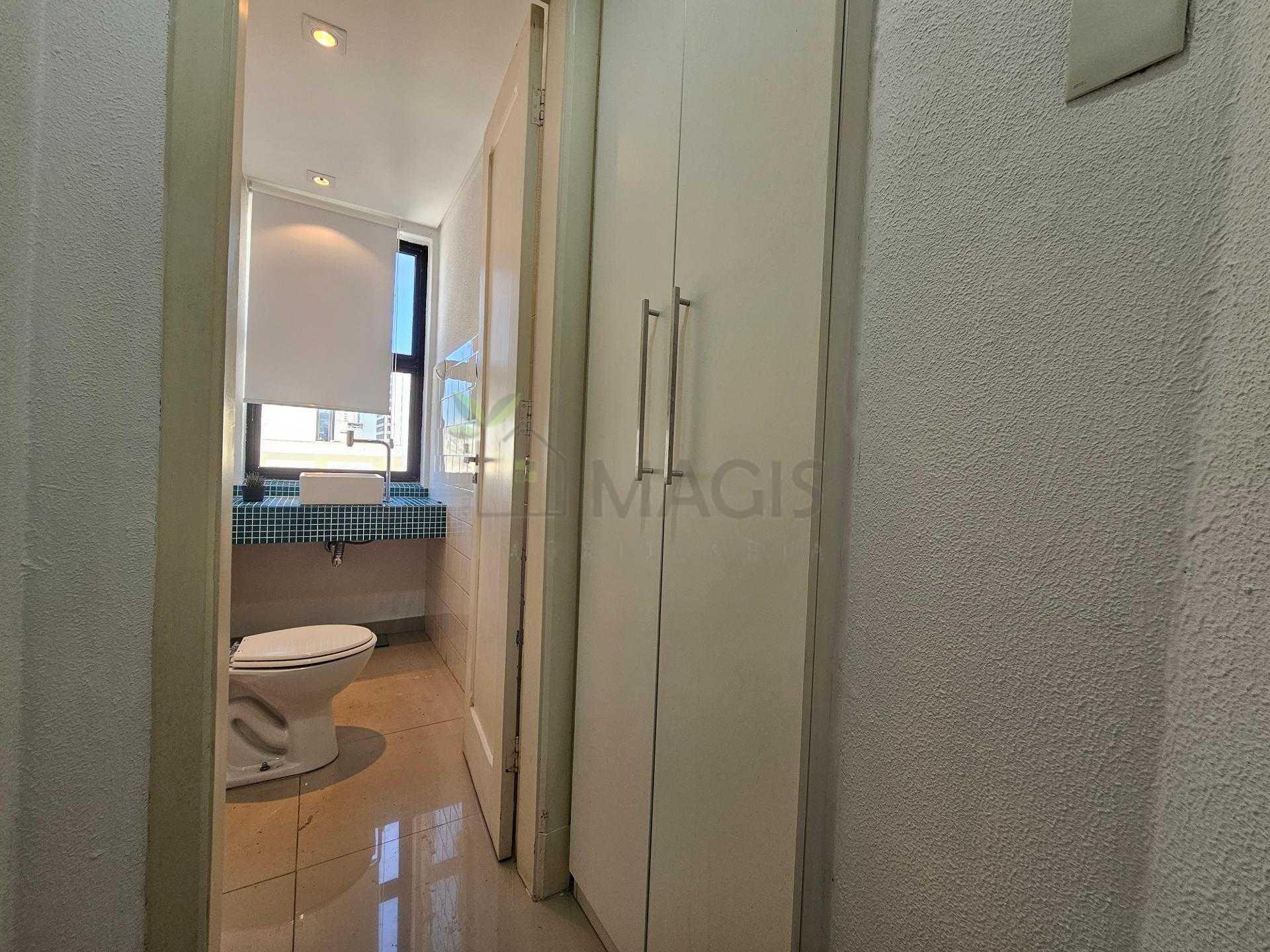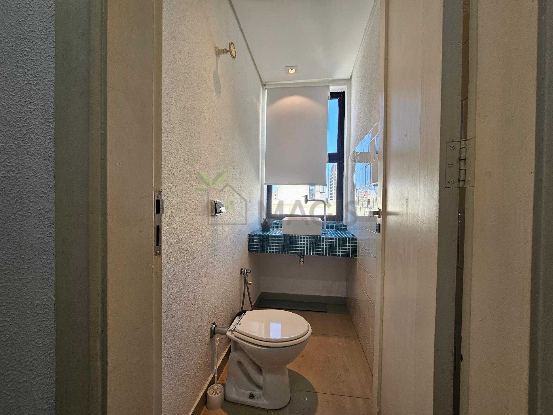 01 banheiro com armário para material de limpeza