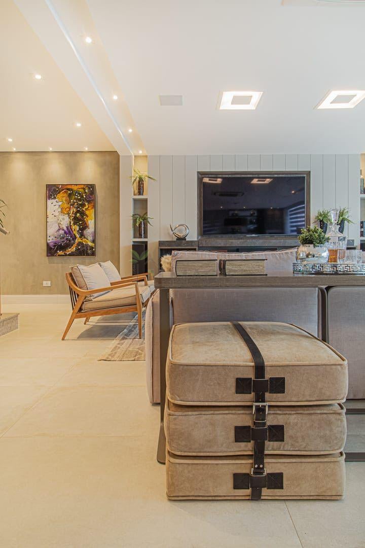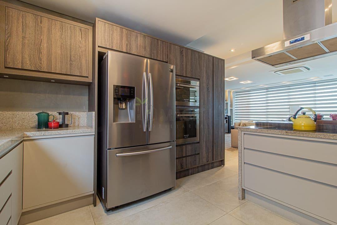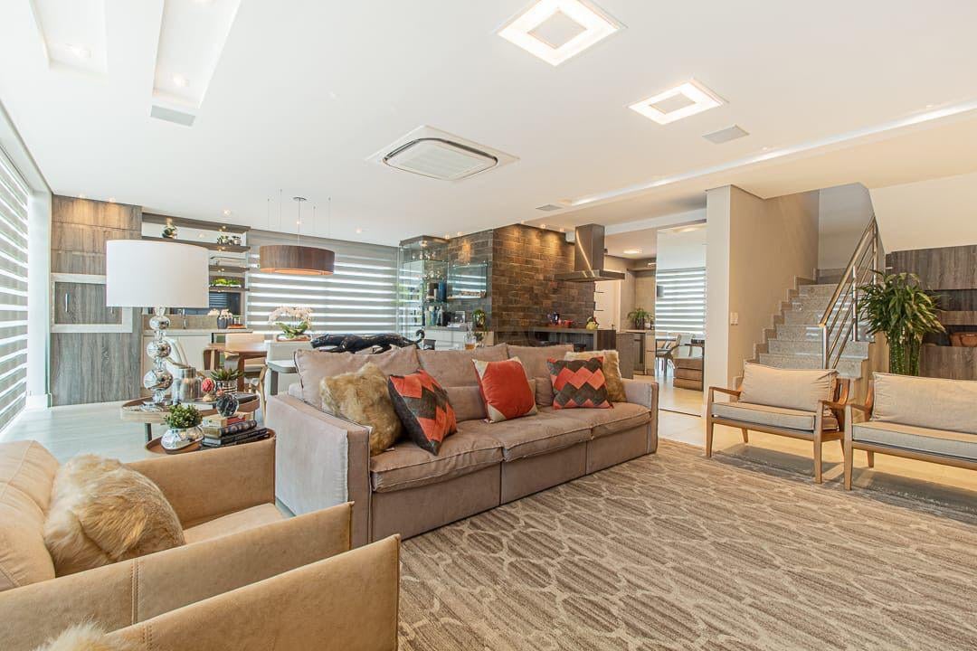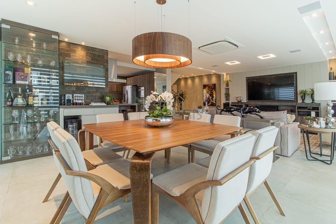 Amplo living integrado de 55m² para sala de estar, jantar e cozinha;