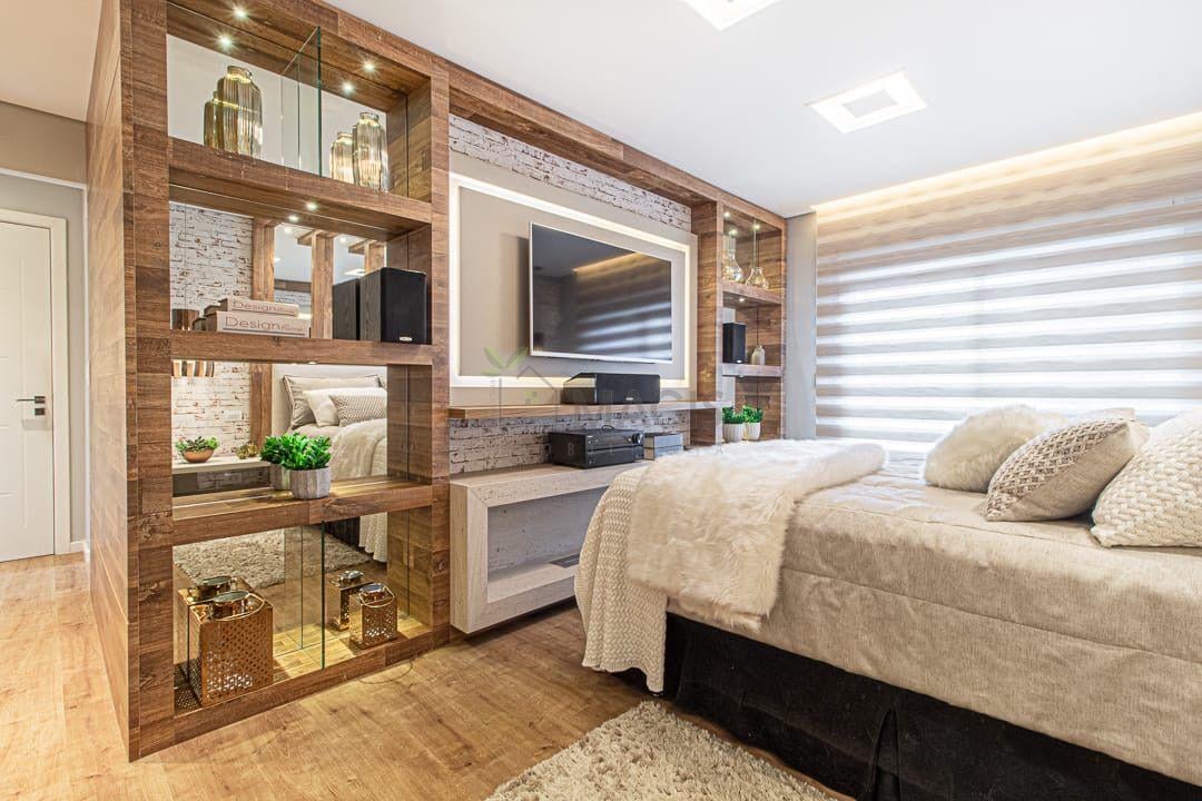 Suíte master com closet dos dois lados e banheiros senhor e senhora;