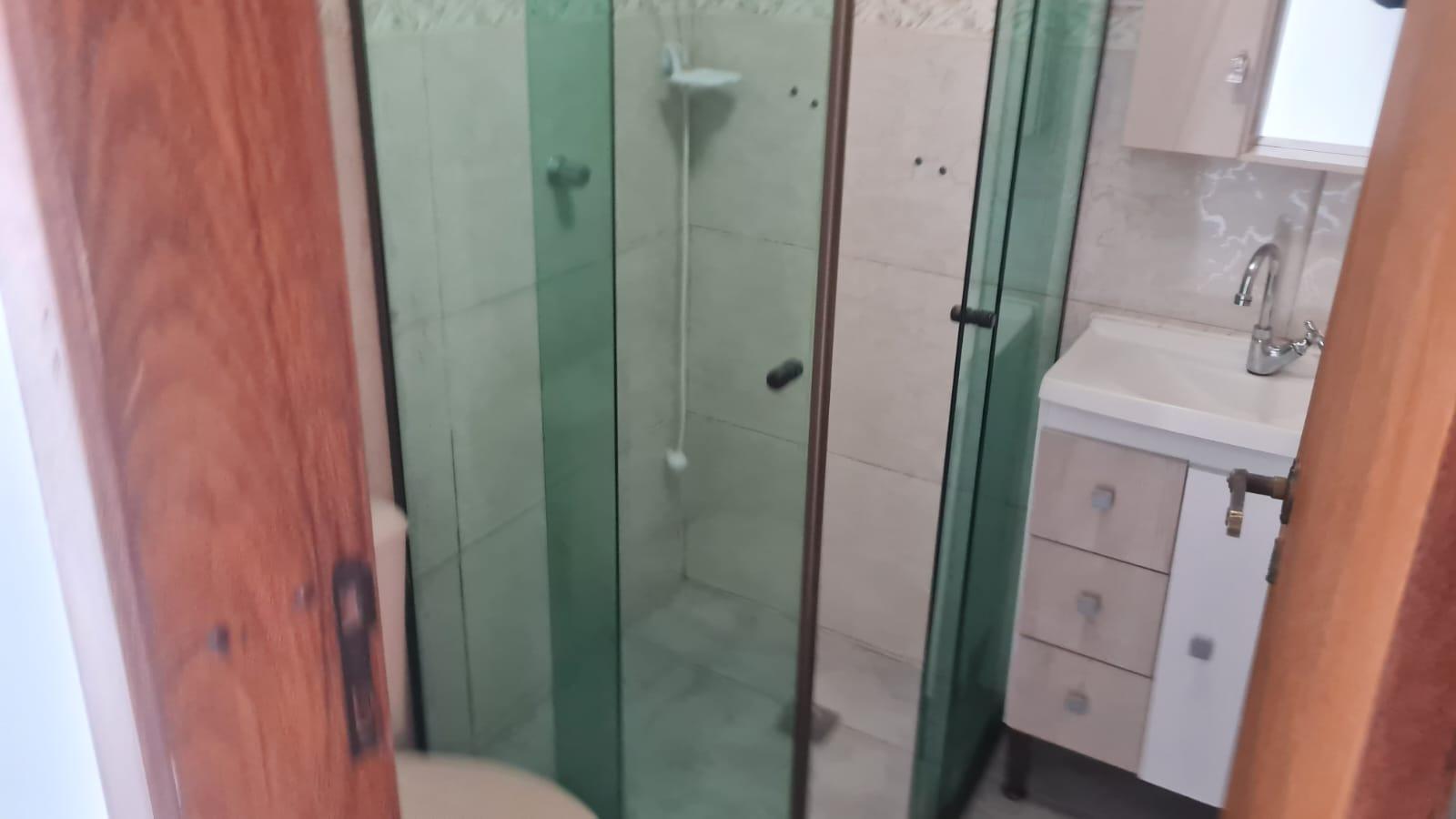 Banheiro bem iluminado, com ótimo espaço para organização;