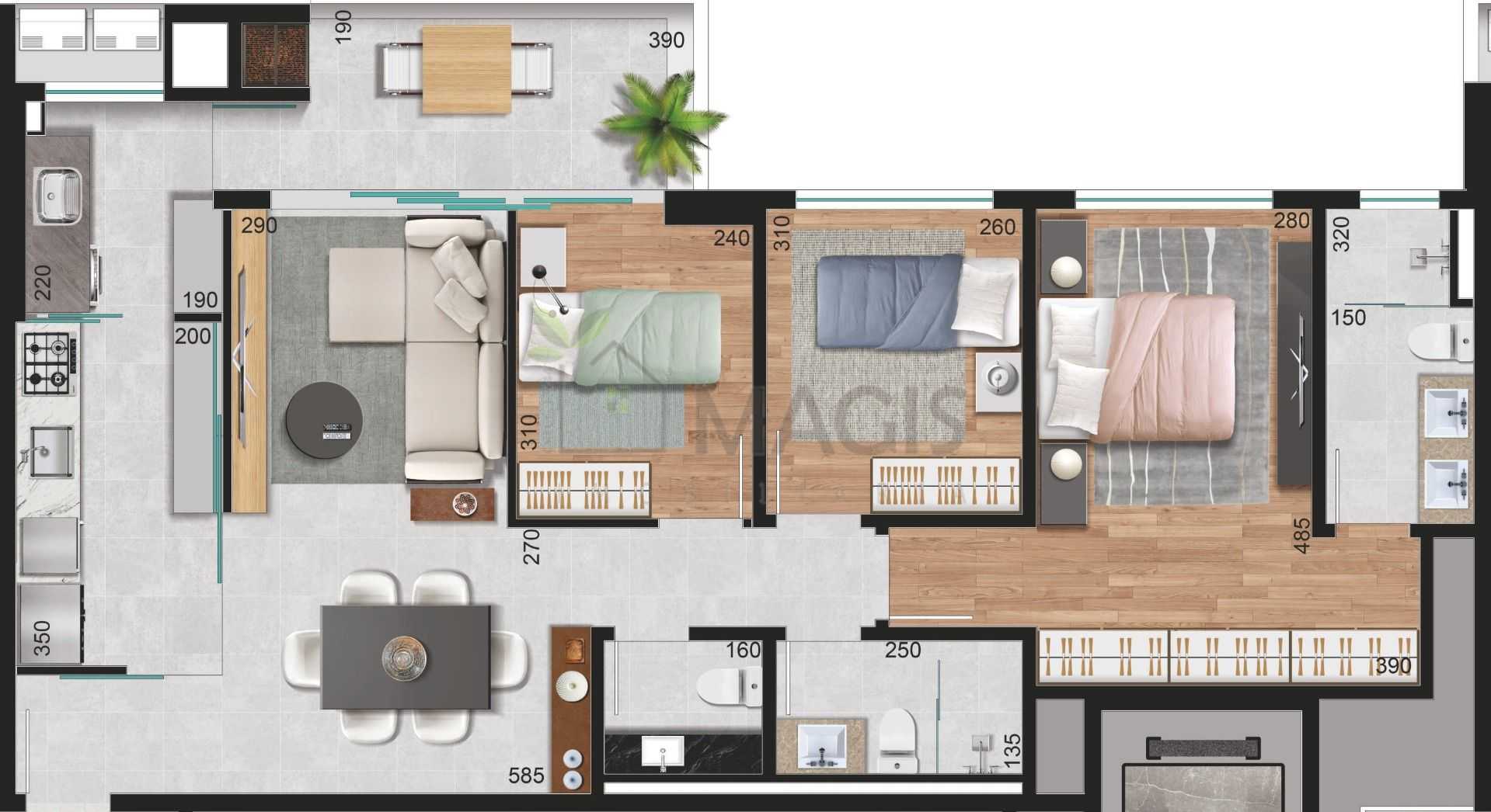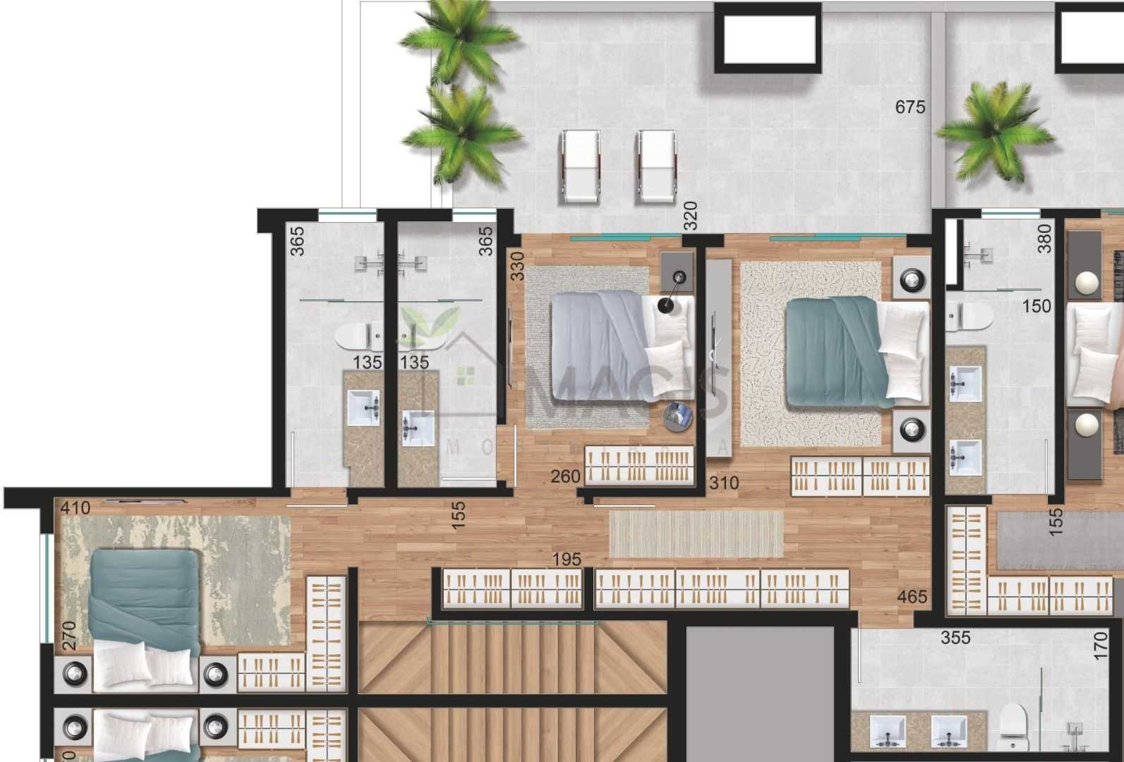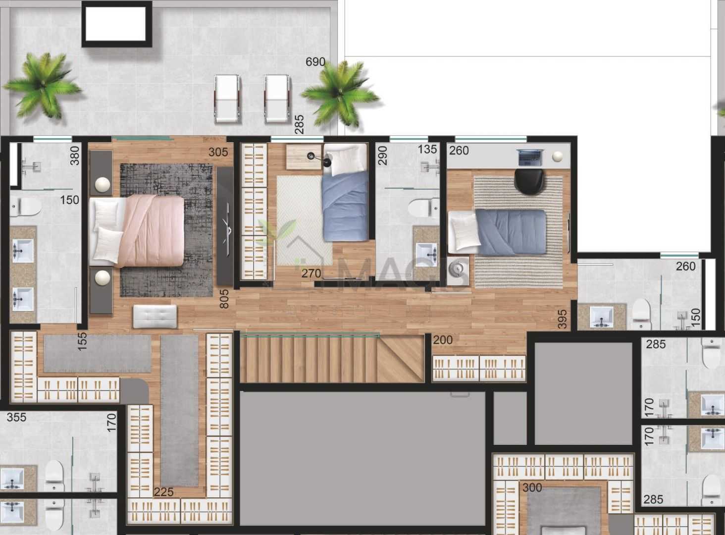 O empreendimento conta com cisternas de reuso e água potável, além de casa de bombas, garantindo uso consciente da água e mais qualidade de vida.