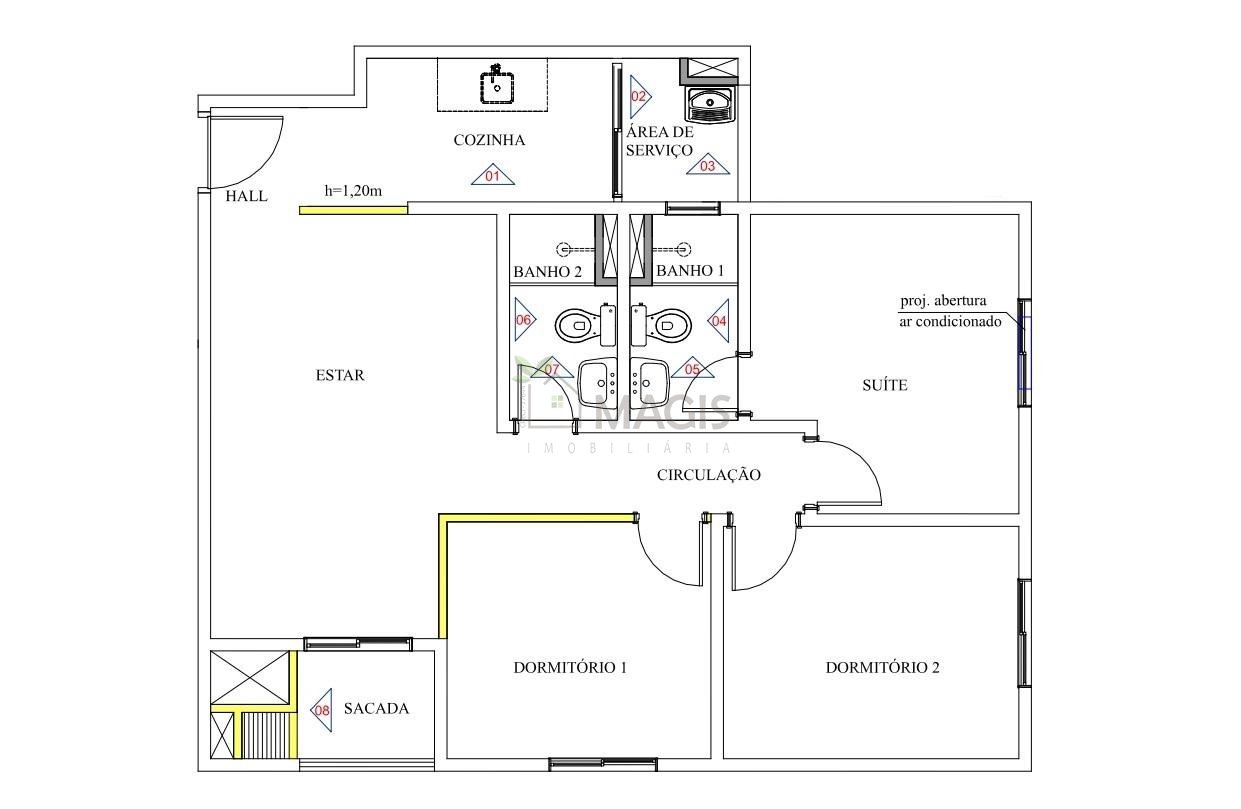 - 3 quartos, sendo 1 suíte e 1 usado como closet
