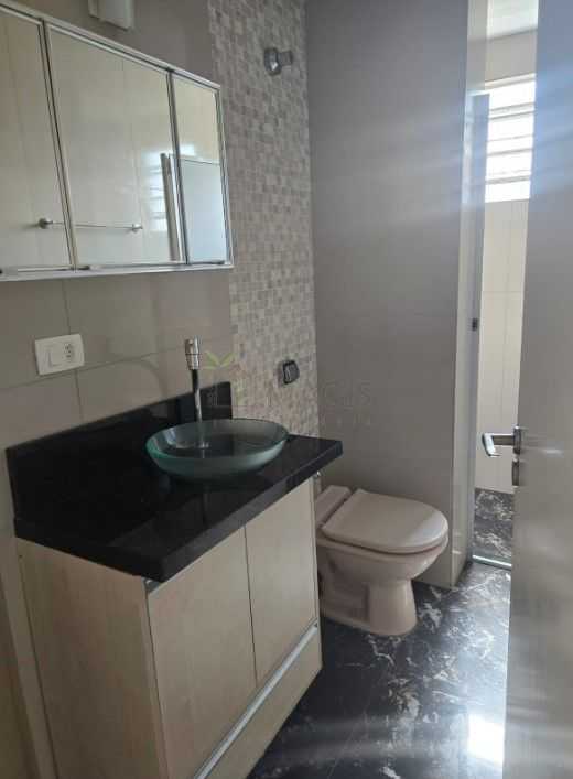 Banheiro com armário e box em vidro
