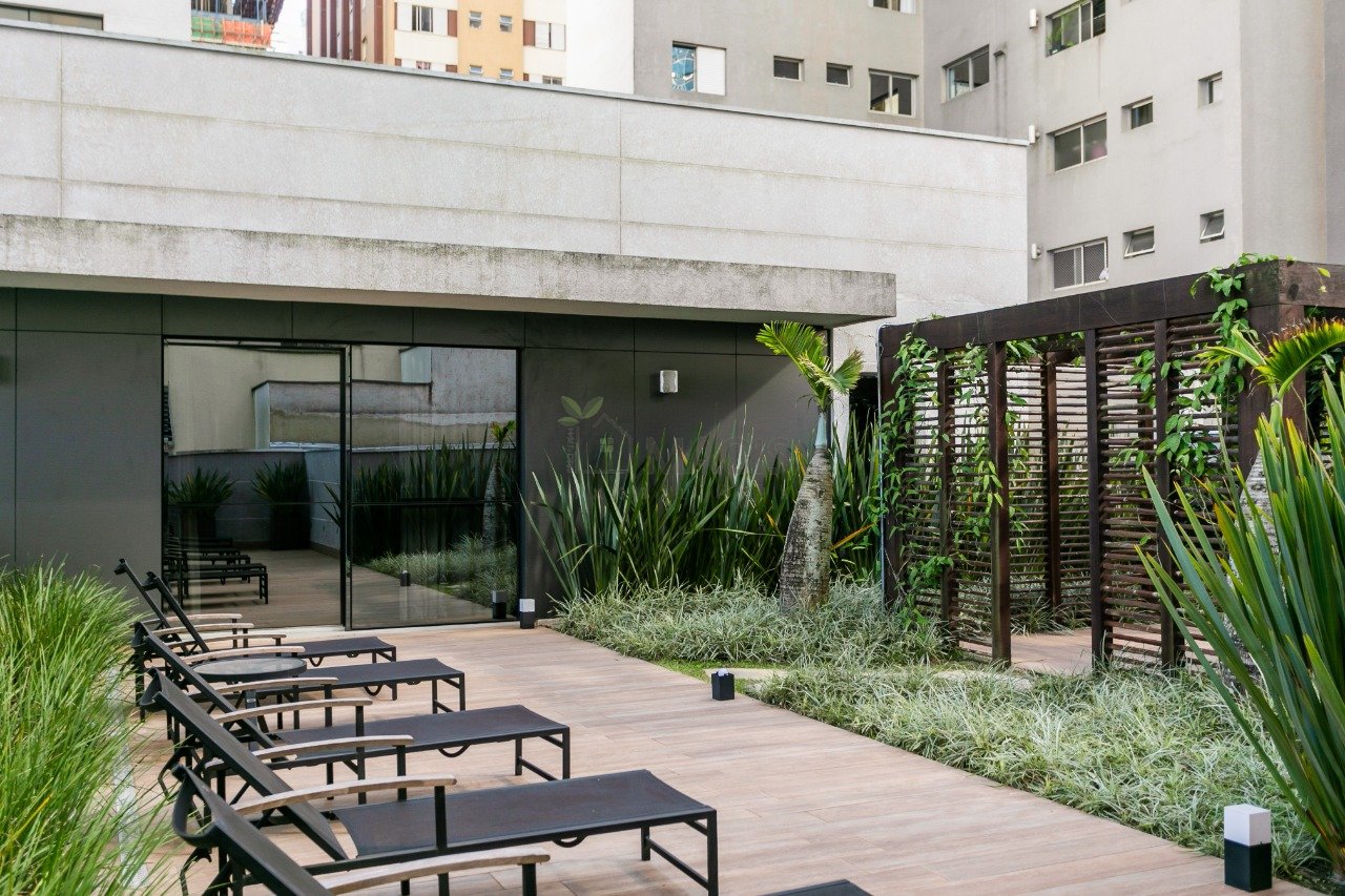- Áreas Comuns: Portaria 24 horas, Ateliê, Brinquedoteca, Espaço gourmet, Pet care, Playground, Salão de festas adulto, Salão de jogos, Sauna, Spa, Hidromassagem, Academia de ginástica, Piscina adulto coberta, Piscina infantil coberta, Restaurante com área externa, Pergolado, Lounge com lareira externa,