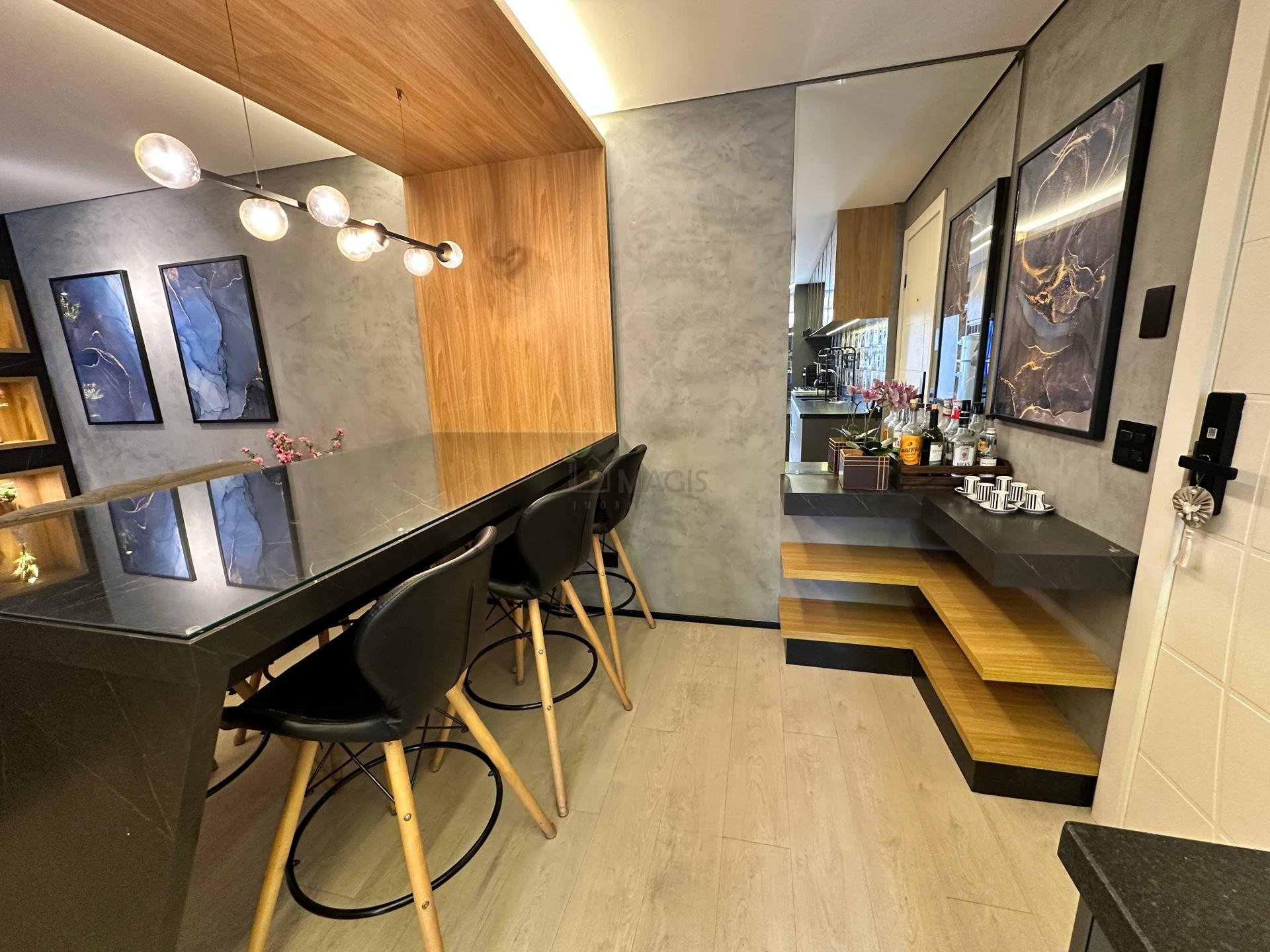 O imóvel está todo reformado e mobiliado, com acabamento e móveis de alto padrão.