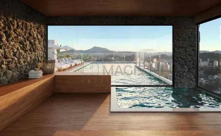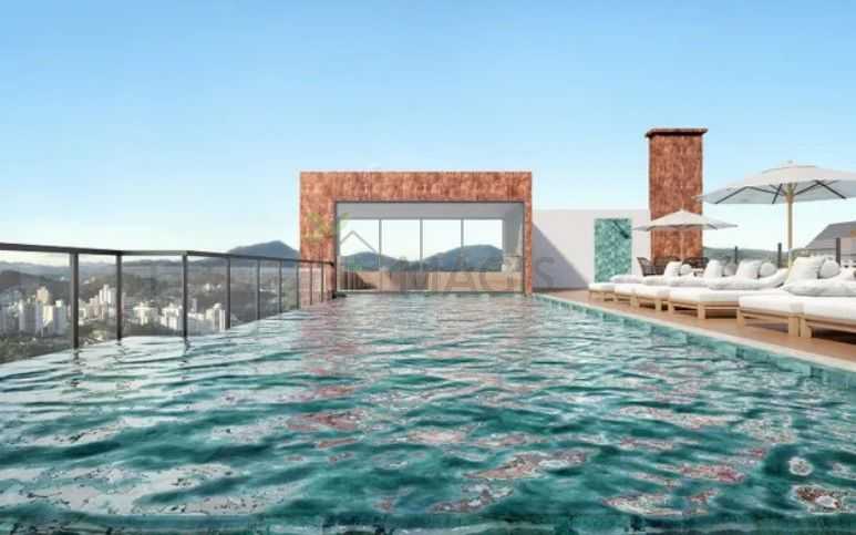 Piscina com borda infinita e sauna, oferecendo momentos de relaxamento e bem-estar.