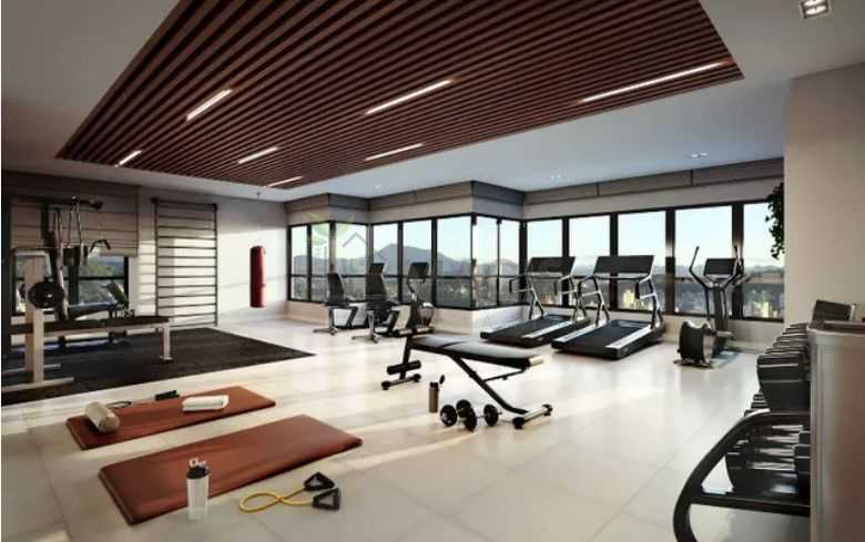 Academia completa, equipada para treinos funcionais e musculação.