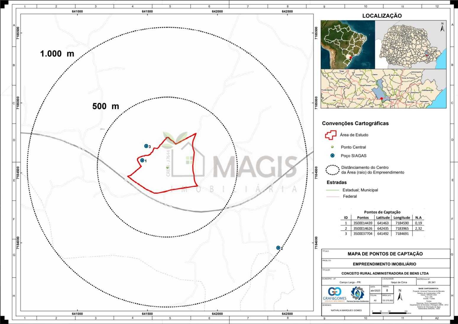 Estudos técnicos realizados: Hidrogeológico, Planialtimétrico e Florístico.