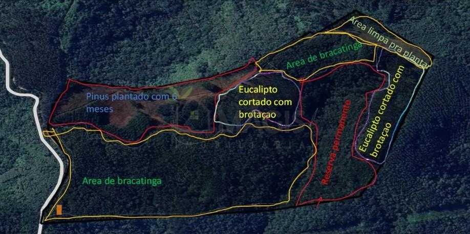 Plantação consolidada: O terreno conta com 7.000 pés de pinus e 16.000 pés de eucalipto, garantindo rendimento imediato e potencial de valorização a médio e longo prazo;