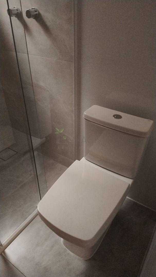 Banheiro social moderno, com espaço para instalação de armários e espelhos;