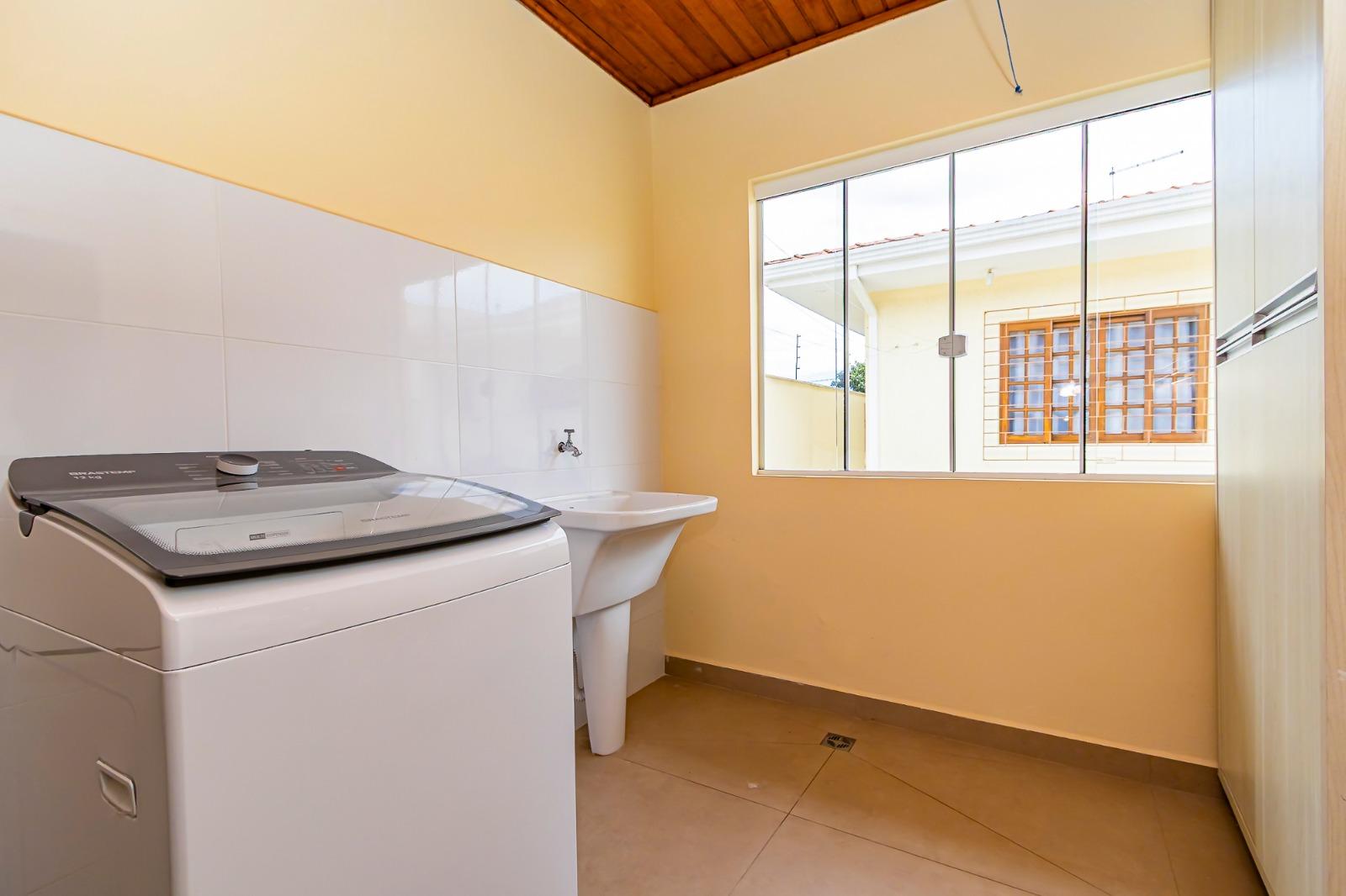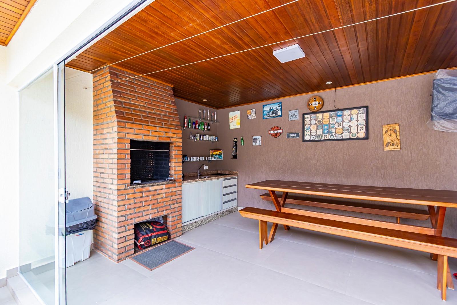 A casa conta com 4 quartos, sendo 1 suíte, sala de estar, sala de jantar, cozinha, banheiro social, lavanderia e churrasqueira, ideal para quem busca espaço interno e áreas de convivência bem definidas.