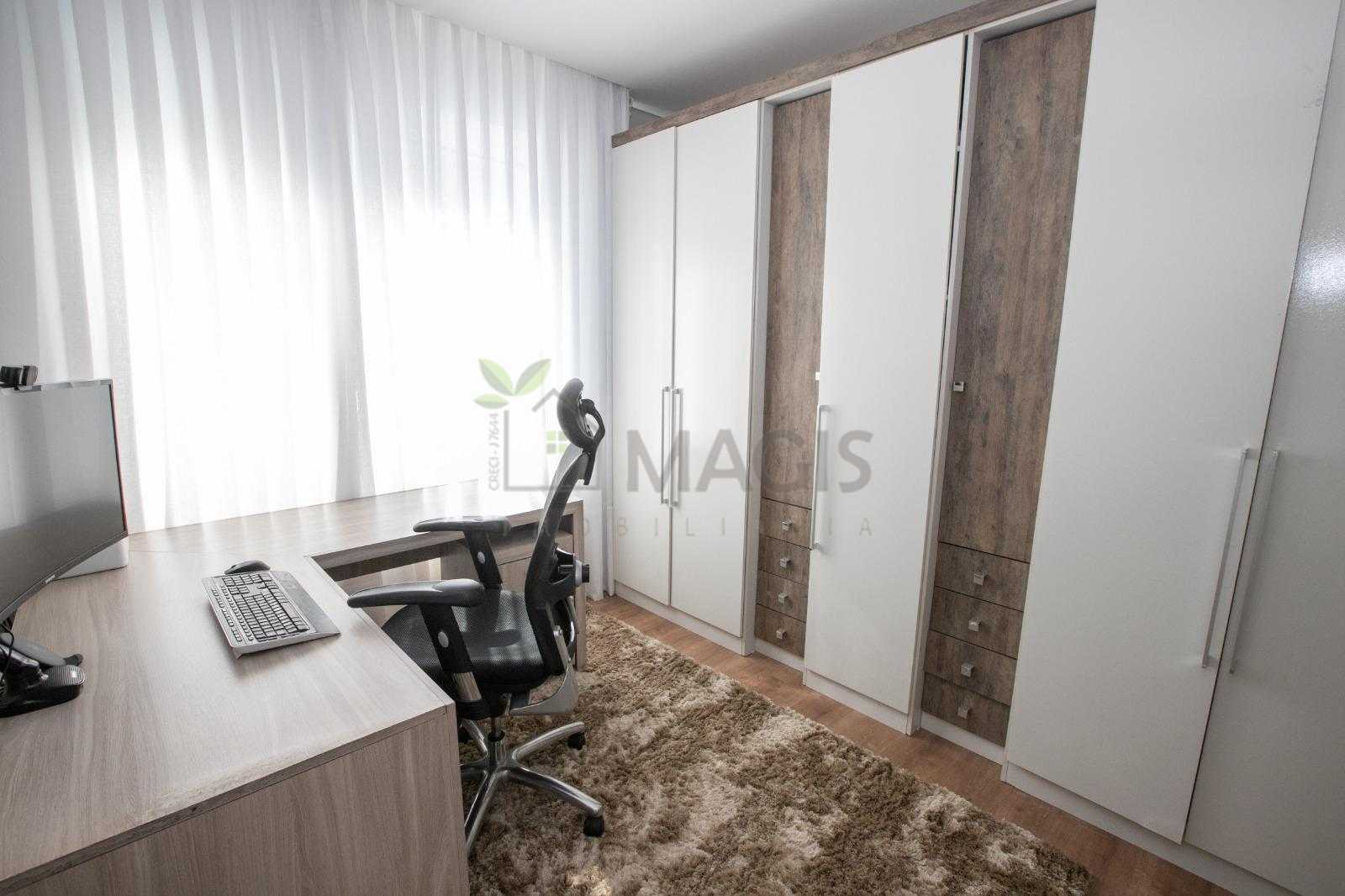 Atualmente, dois dos dormitórios foram adaptados como home offices, oferecendo versatilidade para diferentes estilos de vida.