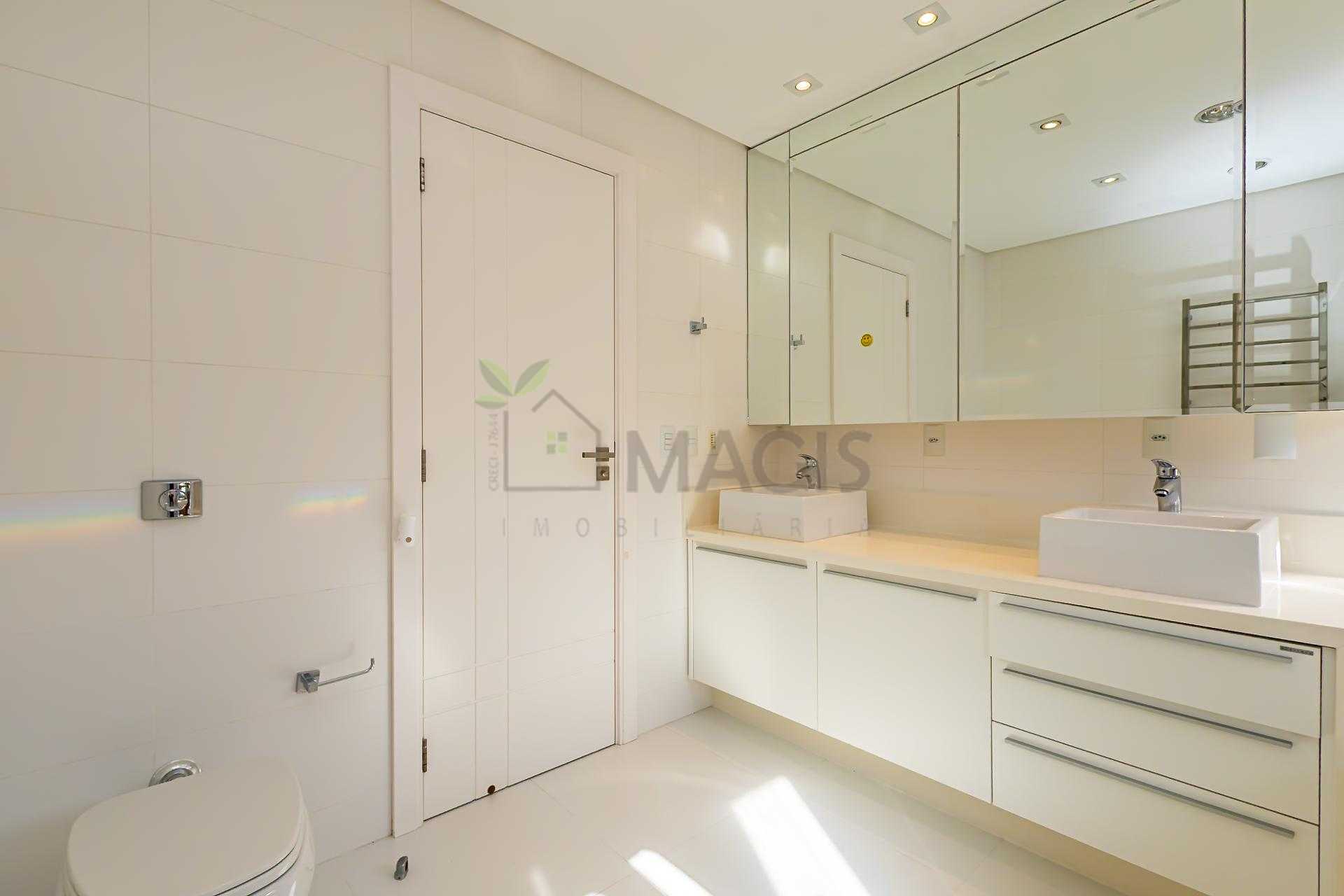 Ainda no térreo, há um lavabo e um dormitório climatizado, versátil para home office ou hóspedes.