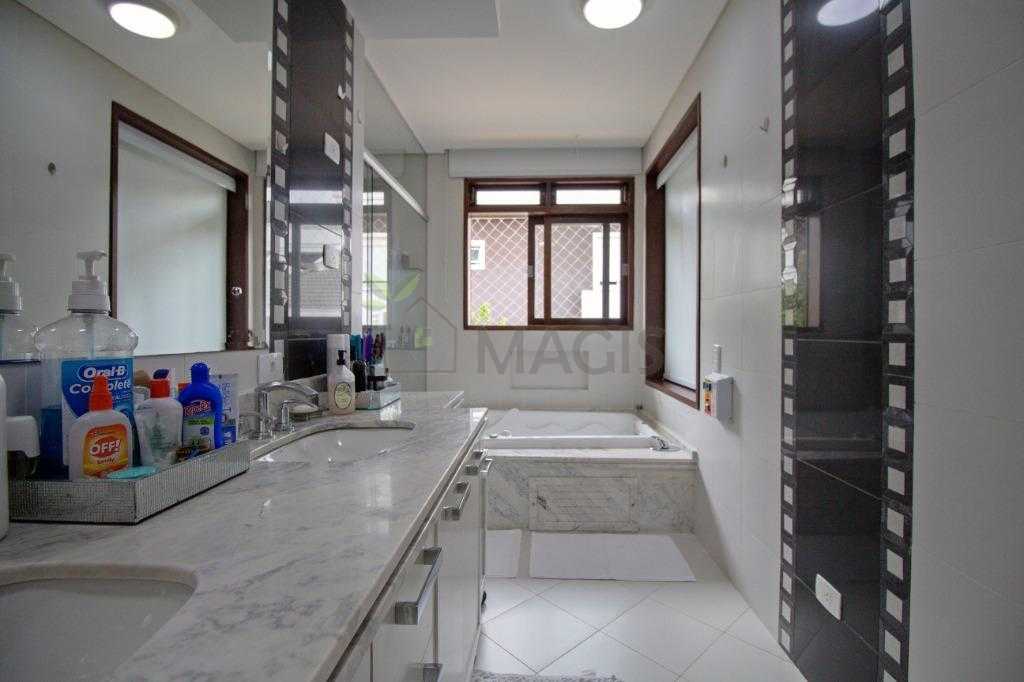 - Suíte master com sacada, banheira, Cuba dupla, closet com armários