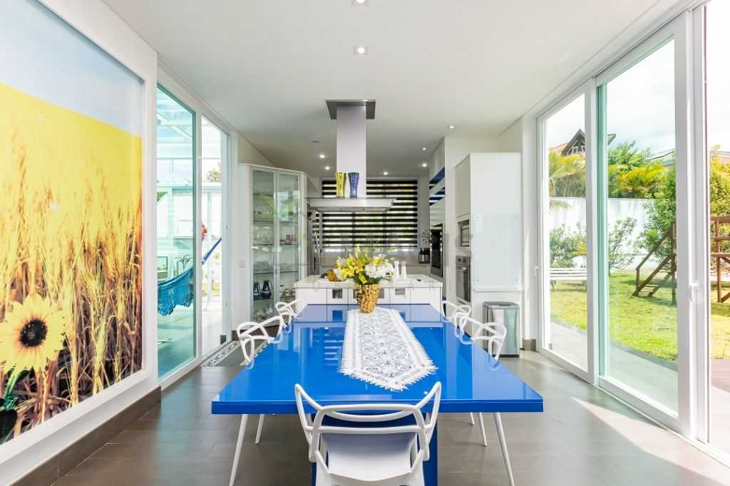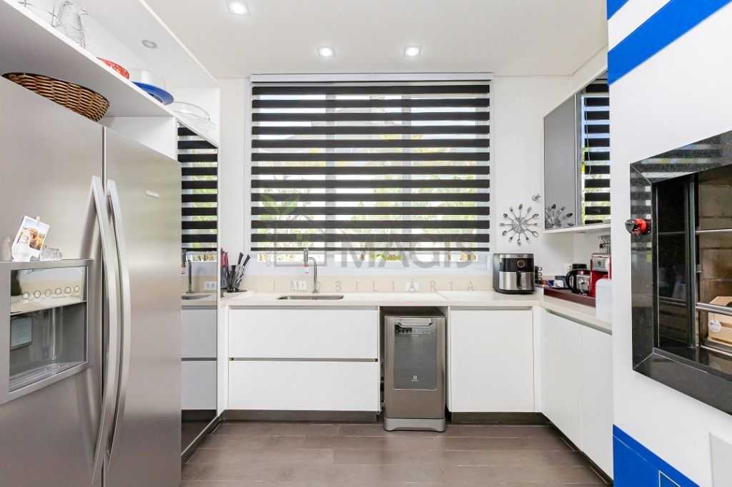 - Cozinha moderna com ilha gourmet, churrasqueira e espaço para copa