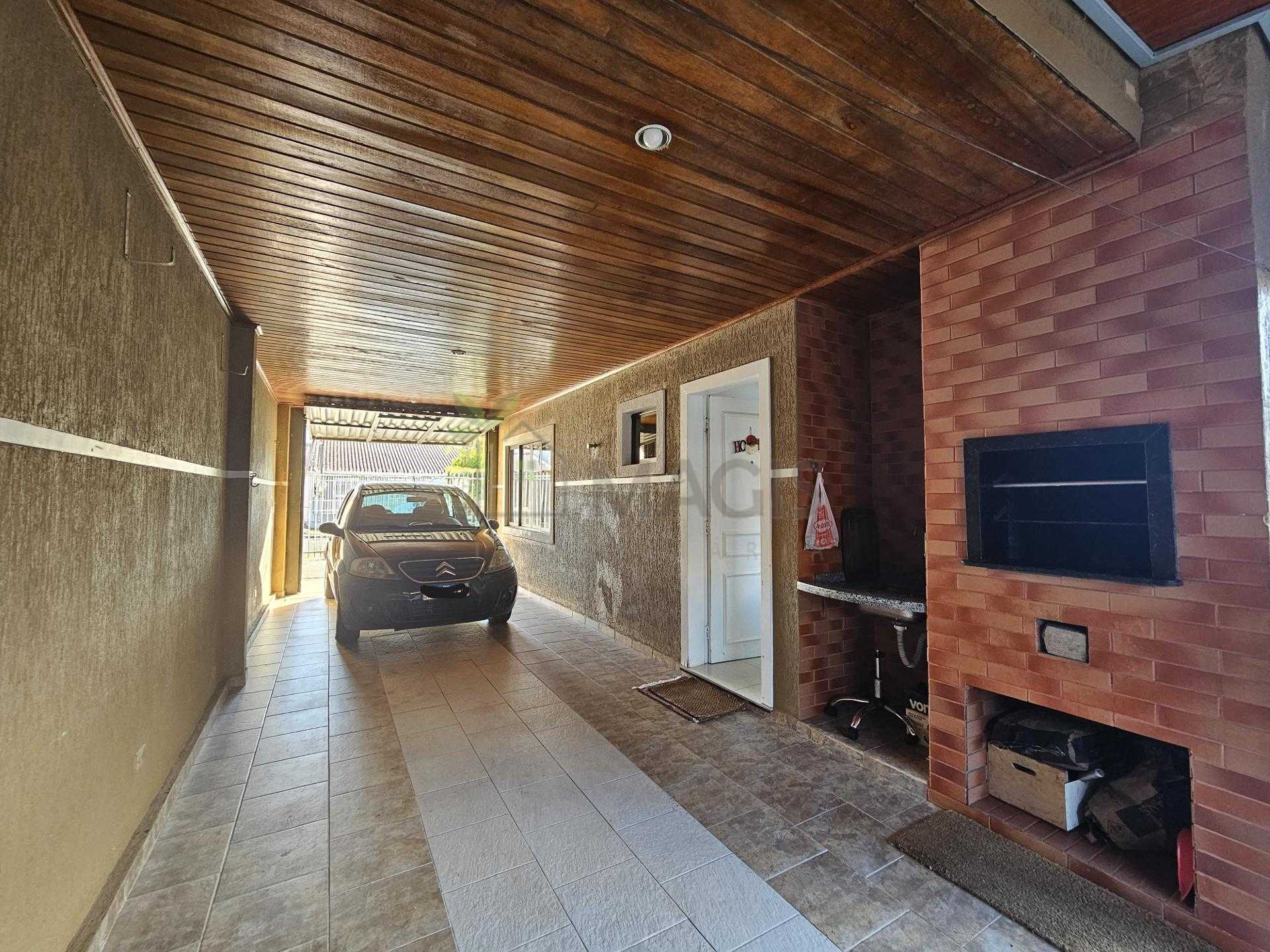 Churrasqueira anexa a garagem e cozinha em área coberta, facilitando a integração com o espaço externo e cozinha.