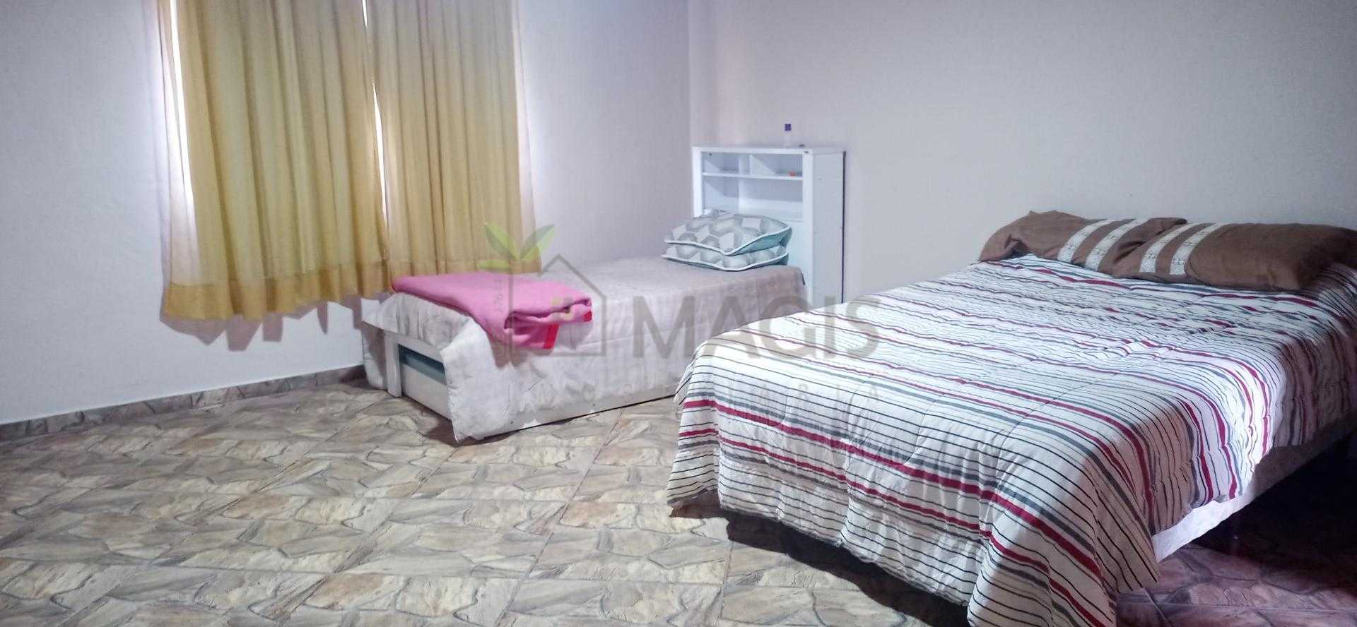Casa principal: 115m², 2 quartos (sendo 1 suíte), sala, cozinha, banheiro social, varanda, garagem coberta para 2 carros e área de serviço.
