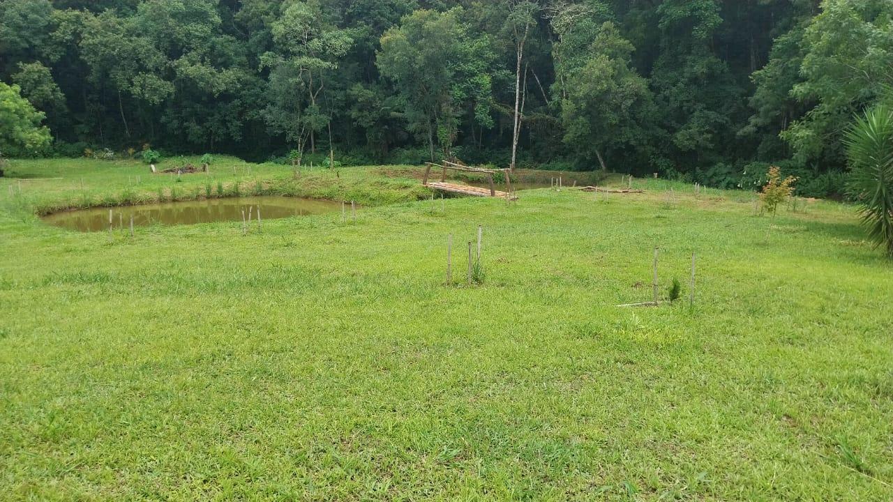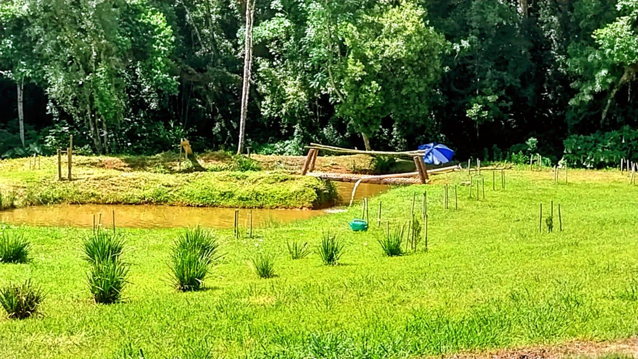 São 20.000m² de terreno, com grande parte limpa e uma reserva de mata natural contornada por um córrego que percorre grande extensão da propriedade, trazendo ar puro e frescor. Ainda conta com um tanque para peixes e área com nascente para formação de novos tanques.