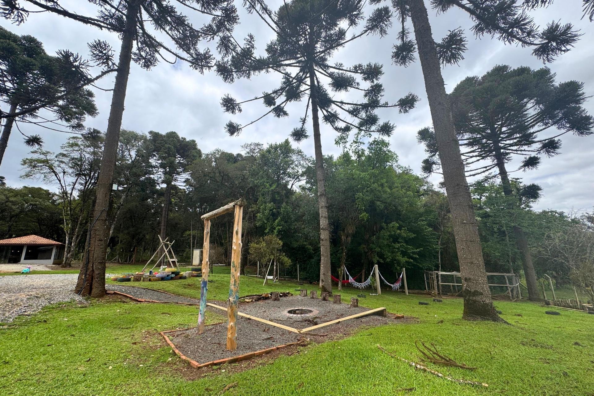 O terreno conta com playground, espaço para fogueira, oficina com cobertura para dois veículos e um córrego na divisa, que traz charme e tranquilidade ao local.