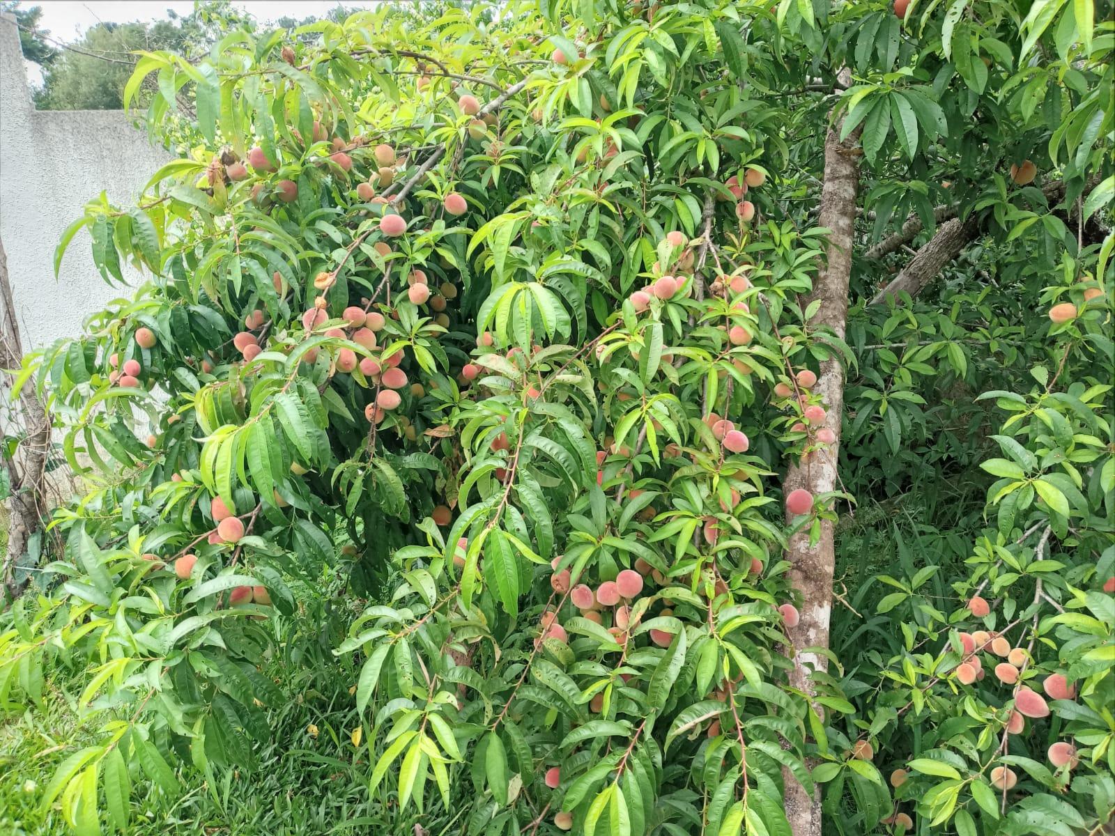 Pomar em plena produção, com diversas espécies de frutas, pronto para colher e desfrutar.