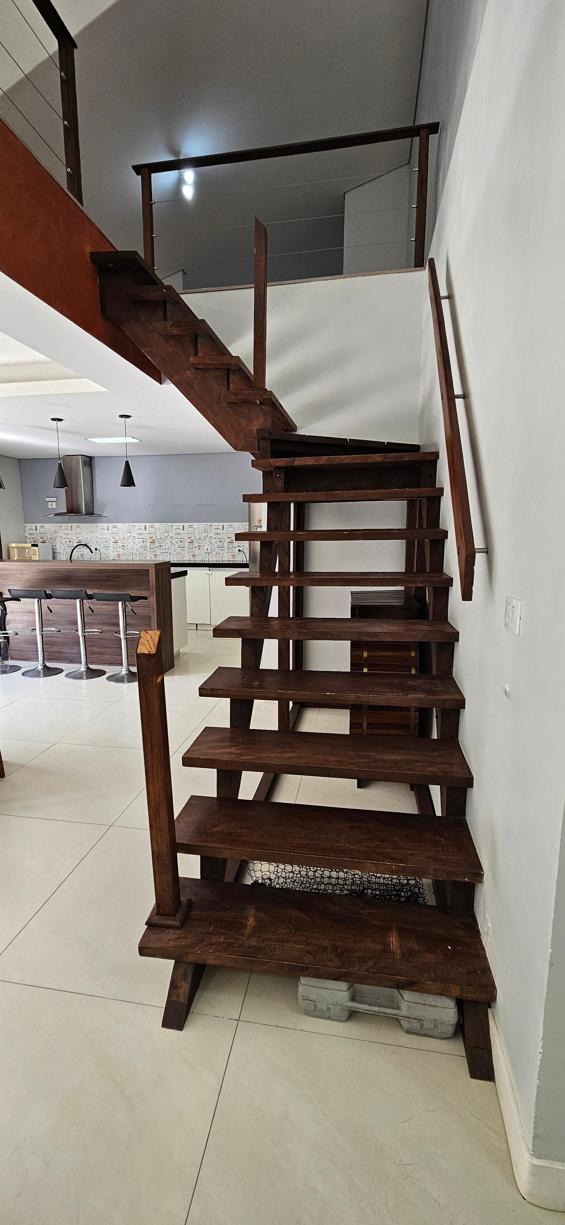 Balcão de madeira para café da manhã com 4 banquetas