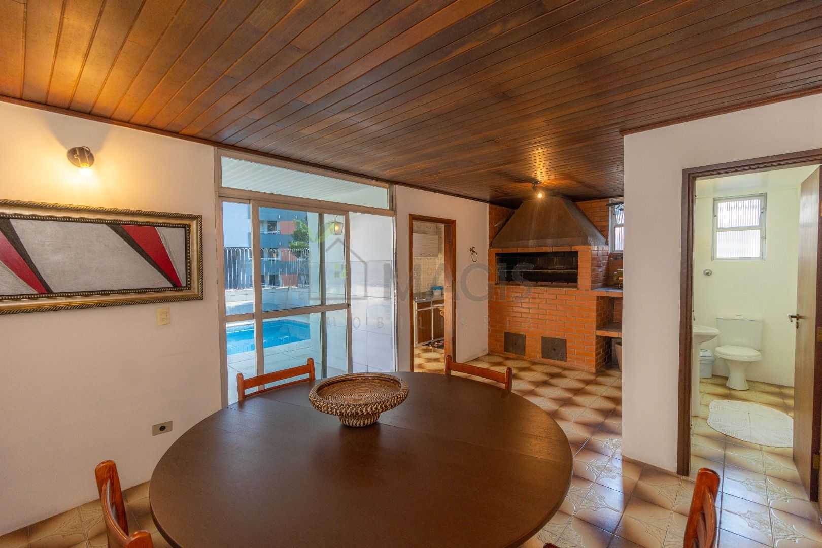 2 salas com sofás, sala de jantar, sauna, churrasqueira e cozinha adicional.