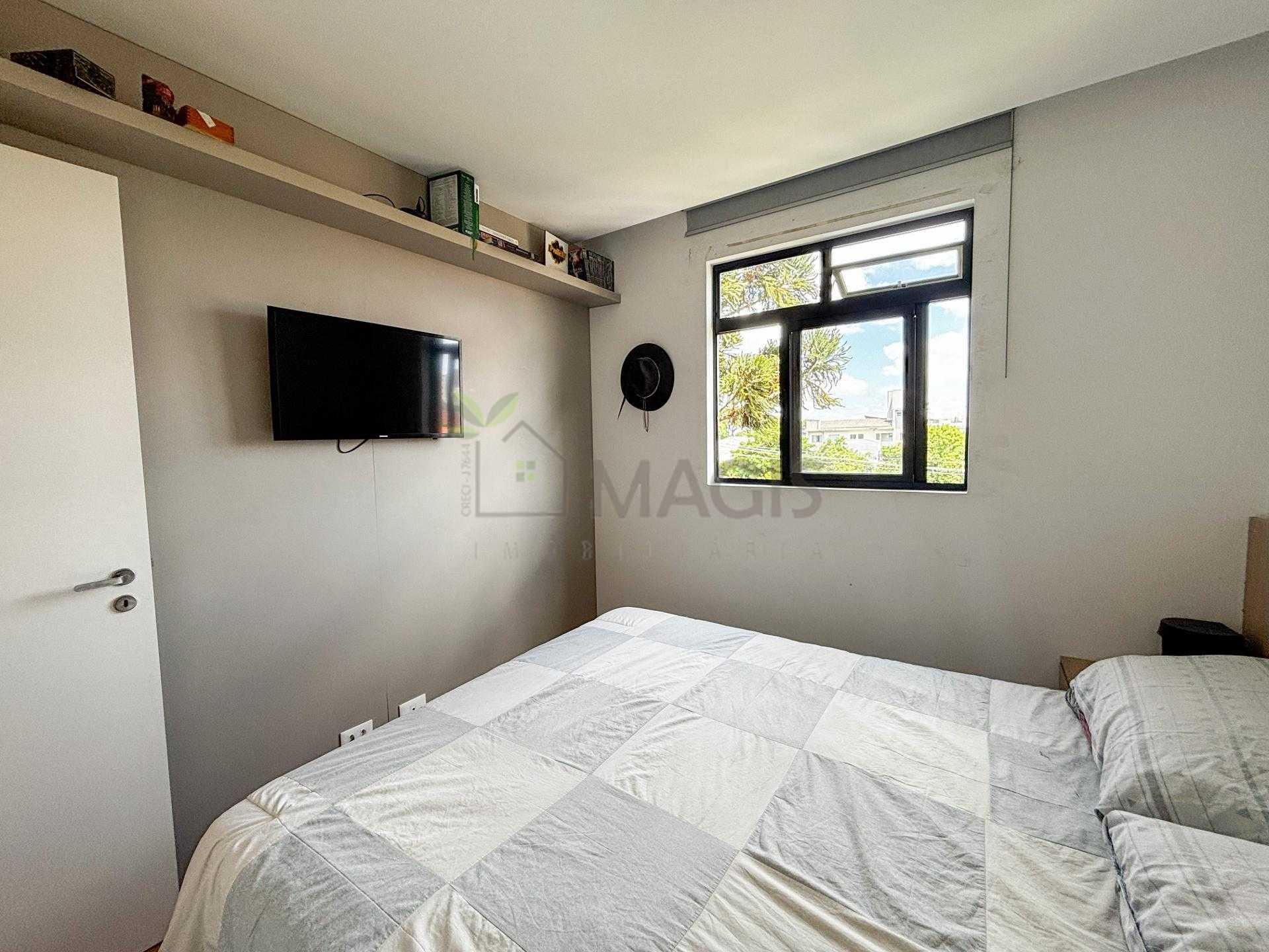 Quarto Principal com cabeceira planejada para cama e painel para televisão.