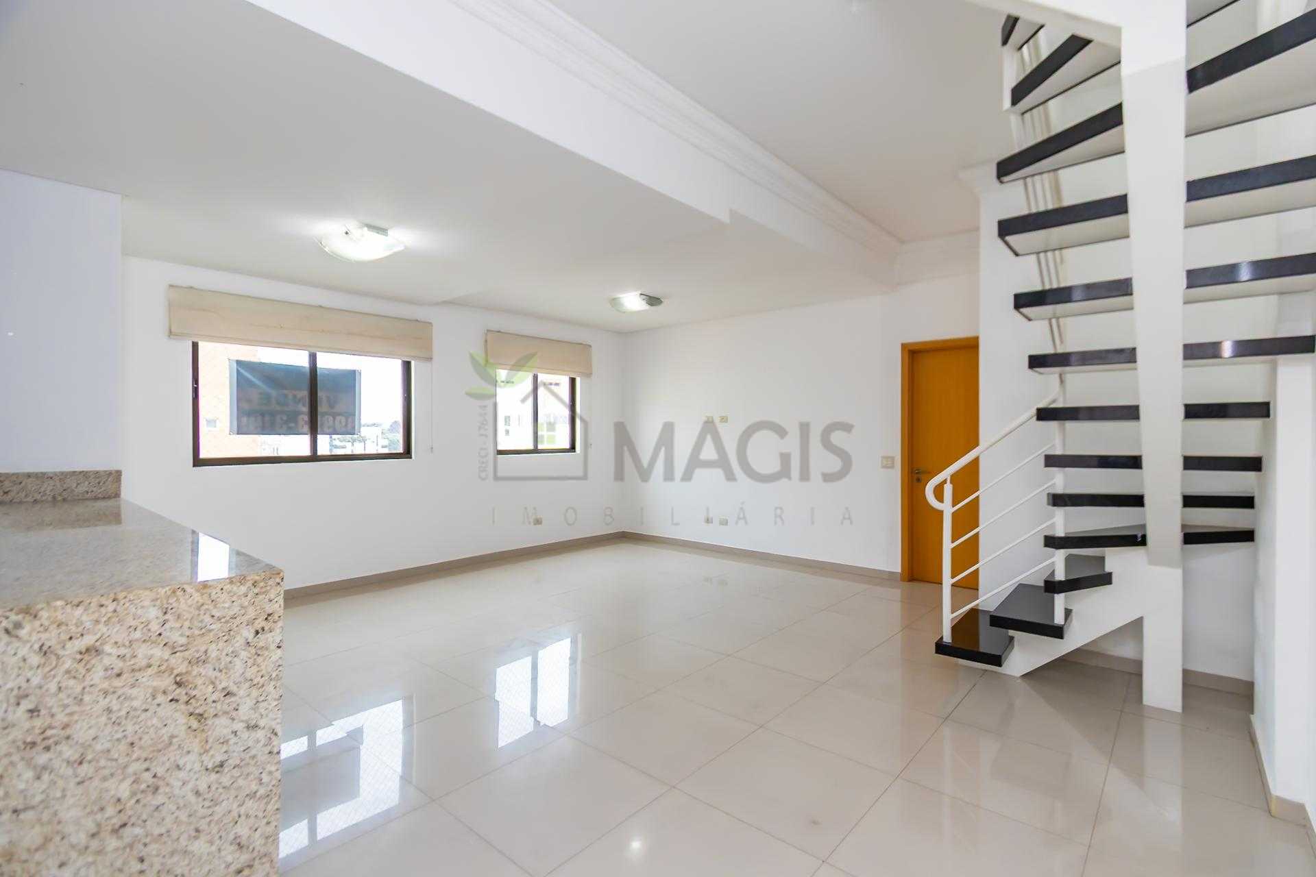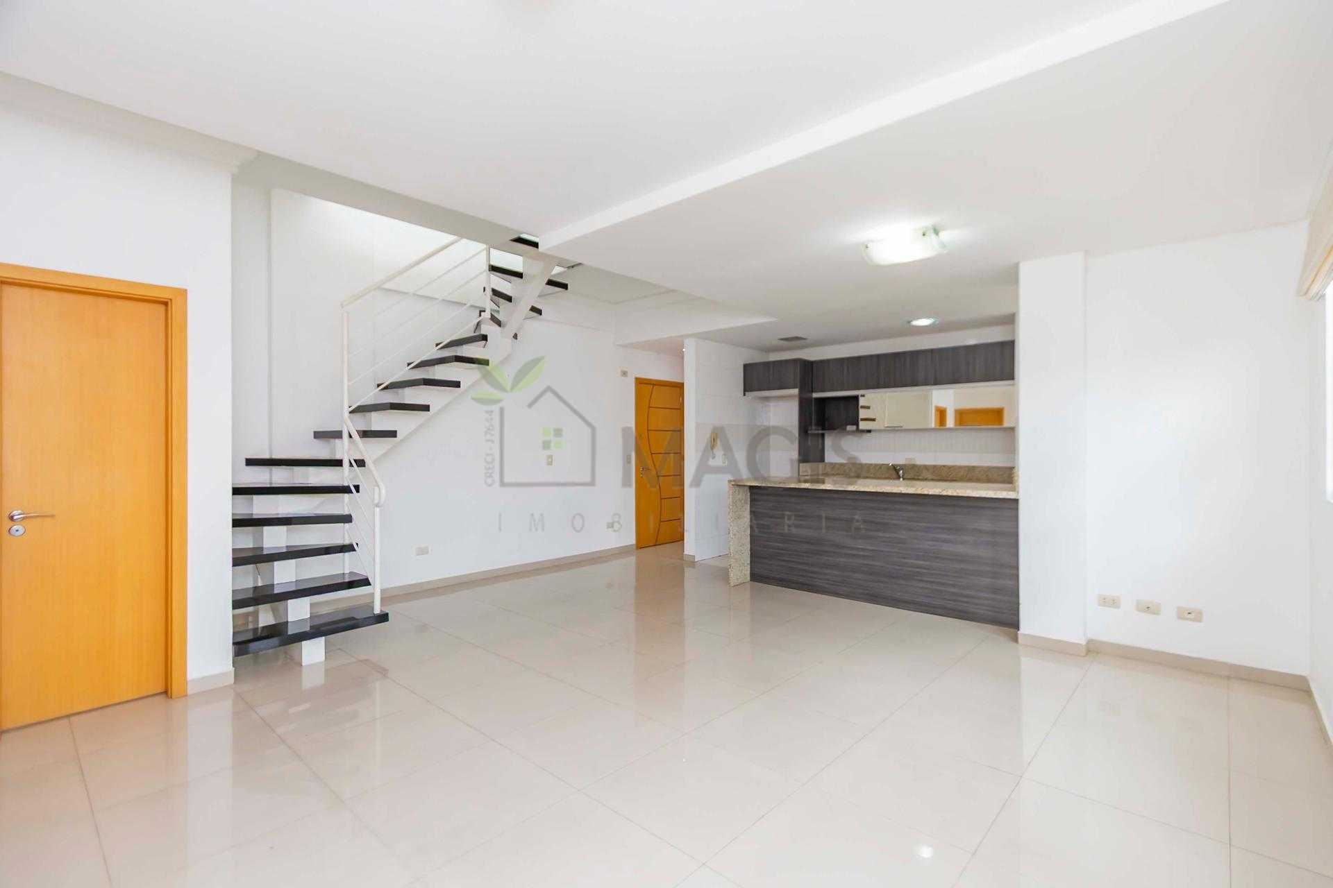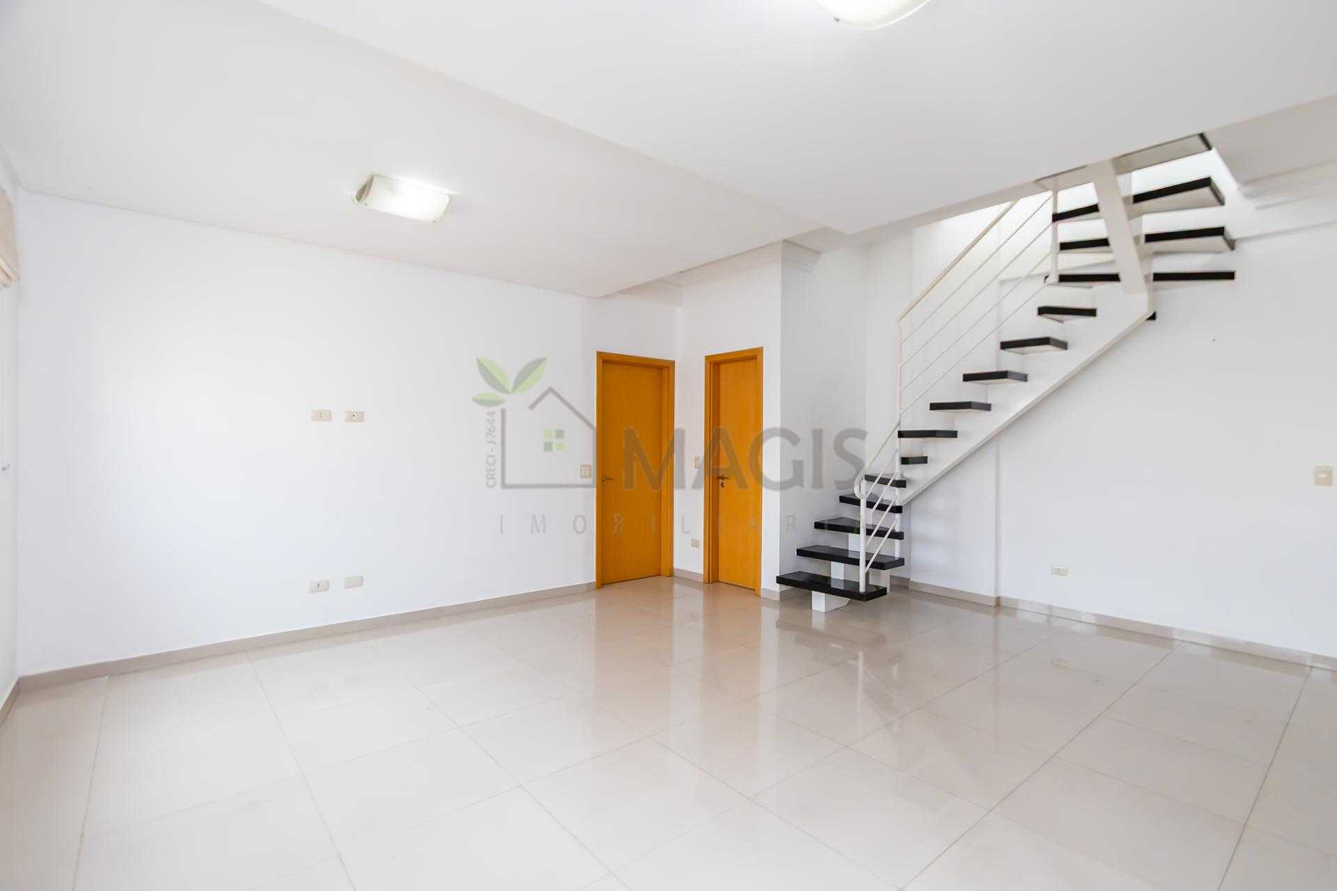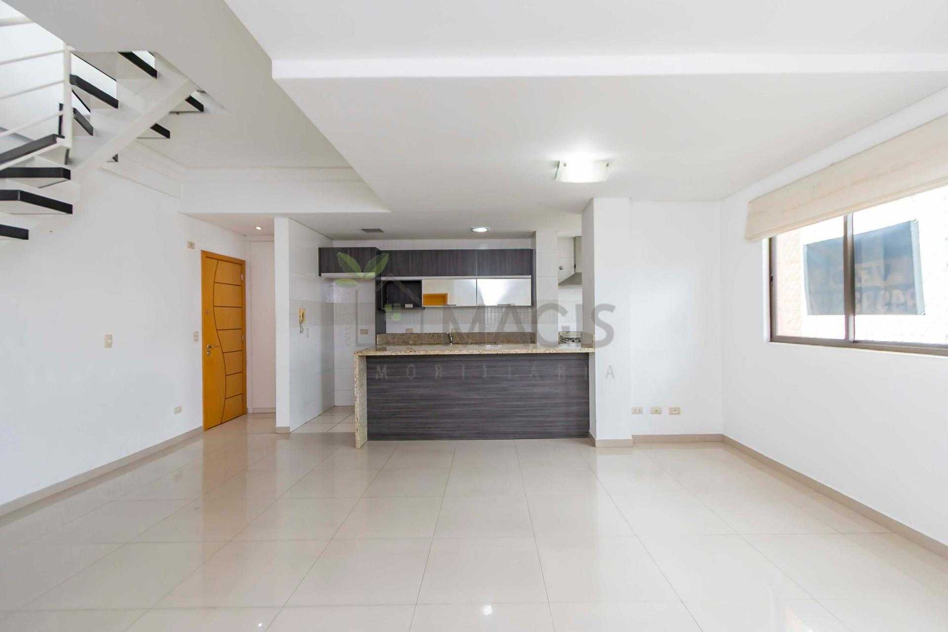 Duplex om 2 dormitórios, sendo a suíte (com amplo closet) no pavimento inferior, e o segundo quarto (que pode ser um Office) no pavimento superior.