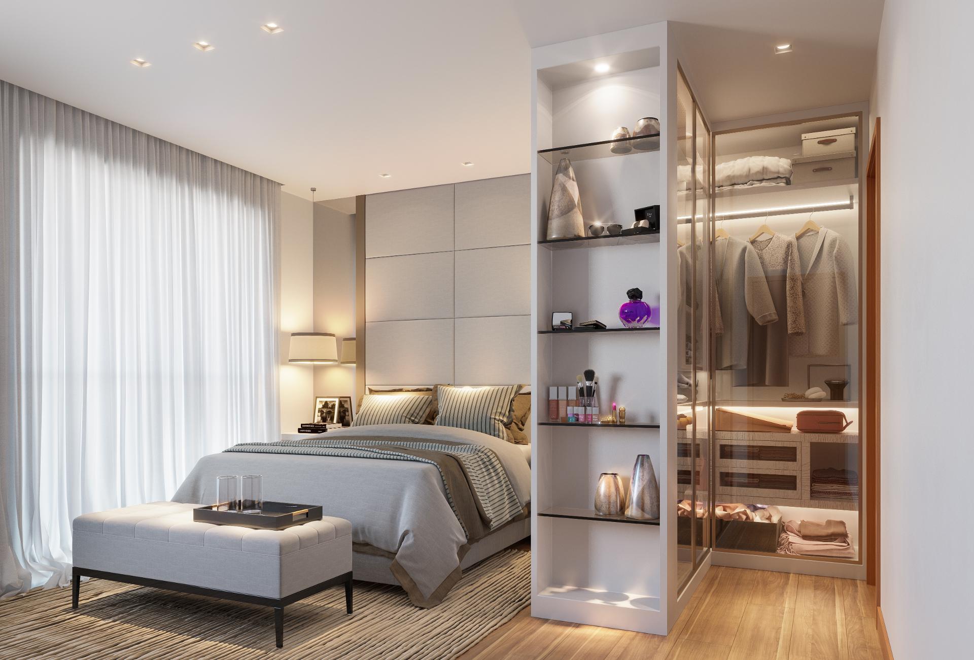 Segundo pavimento com 3 quartos, sendo 1 suíte com closet