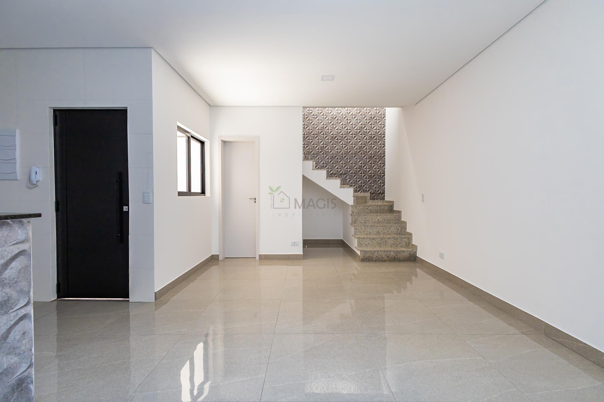 Sobrado novo à venda no Santa Cândida com projeto moderno, excelente iluminação natural e acabamentos de alto padrão. São 98,26m² construídos muito bem distribuídos, com 2 suítes amplas (com sacada, persiana integrada, pé-direito alto e infraestrutura para ar-condicionado), sendo uma com closet.