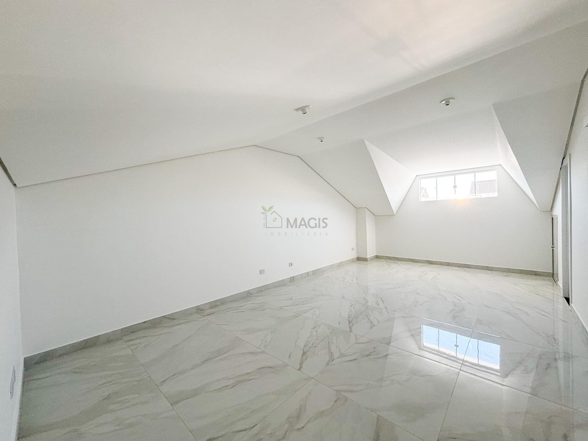 O imóvel dispõe de 2 quartos + amplo ático (ideal para suíte ou espaço de lazer), lindo gramado lateral que valoriza a entrada da cozinha, salão de acabamento de alto padrão. Banheiro impecável em porcelanato e escada imponente completam o conjunto.