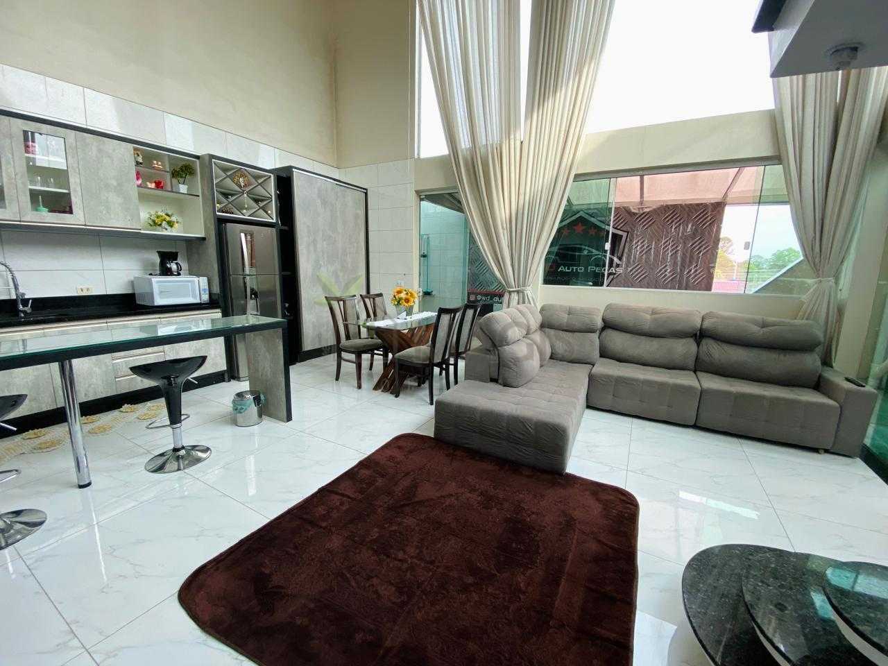 Conta com sala e cozinha integradas em conceito aberto e pé-direito duplo, que valoriza o ambiente e cria uma sensação única de espaço e sofisticação.