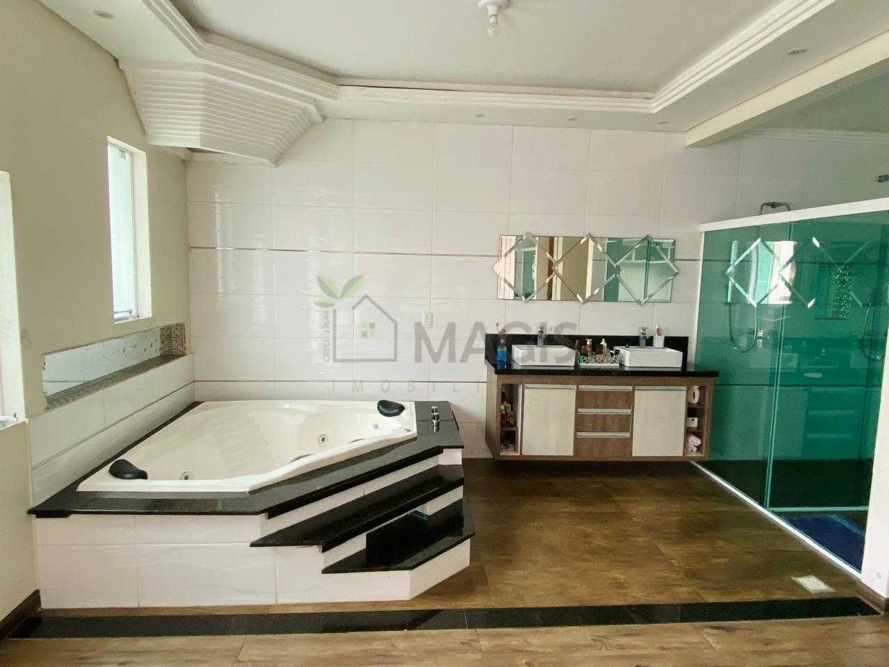 Suíte master de 35 m², espaçosa e elegante, equipada com banheira, perfeita para relaxar após um longo dia.