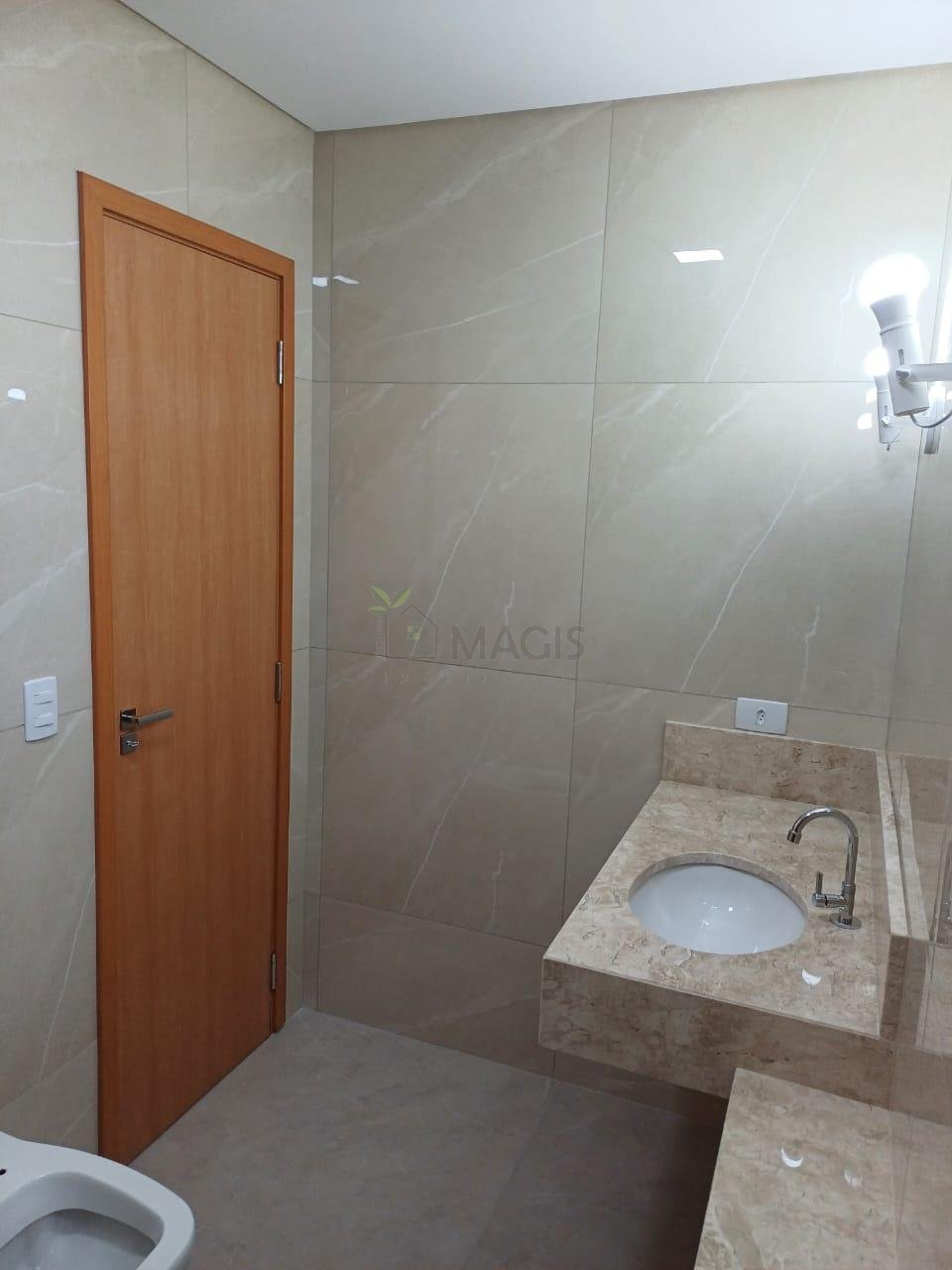 - 3 banheiros completos com acabamentos de alto padrão, box em vidro verde e bancadas em granito