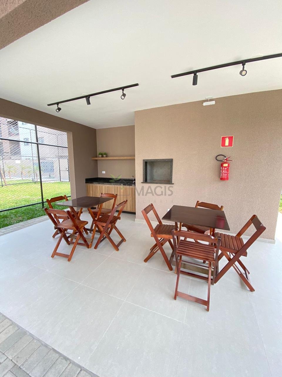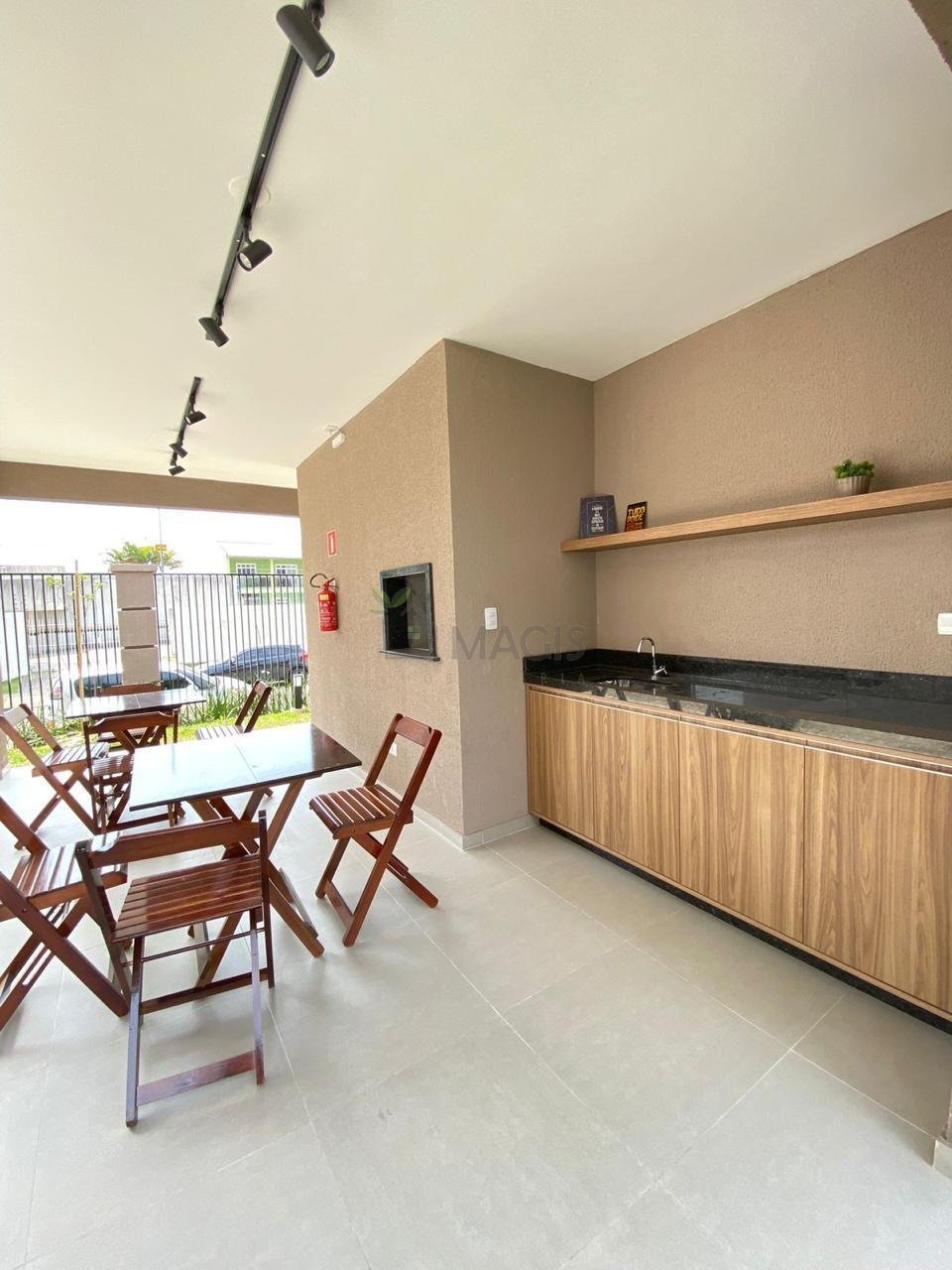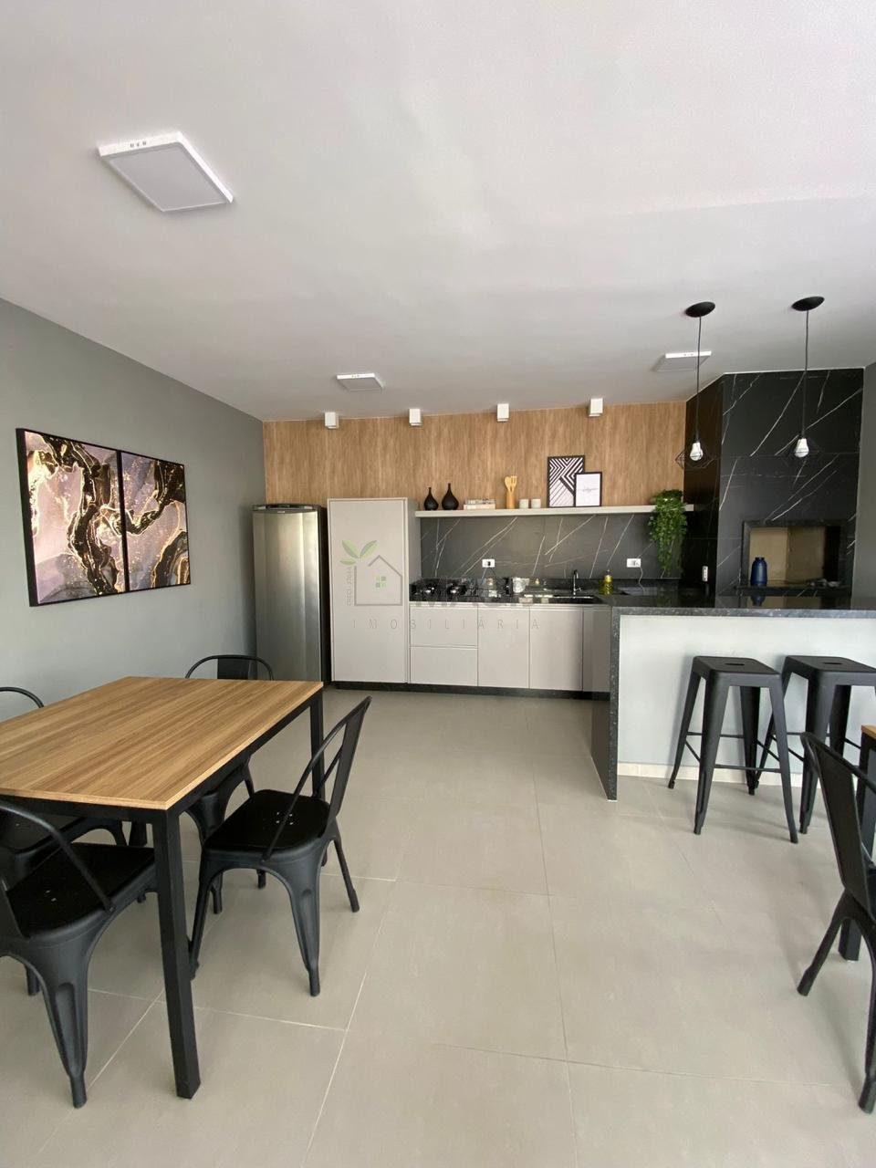 Salão de festas com churrasqueira