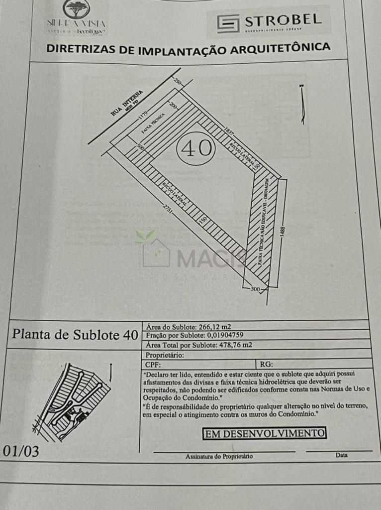 Condomínio Sierra Vista - Bairro Atuba, lote 40, com área total de 478,6 m² e área de sublote de 266,12 m²e, localização interna diferenciada. ENTREGA PREVISTA PARA DEZ/23Um Condomínio Parque para 46 famílias, implantado em uma antiga pedreira de rara beleza natural, valorizando a vegetação nativa e a vista para a Serra do Mar.O empreendimento foi concebido com áreas de convivência e lazer diferenciadas, explorando as características únicas da topografia.O Grill próximo a quadra poliesportiva é informal, o Sports Bar é o espaço ideal para o happy hour e o Salão de Festas com a sua praça externa, o local ideal para as comemorações com amigos e família.Além dos espaços ao ar livre, como a pracinha com lareira junto a um paredão de pedra, a trilha que passa pelo pomar, o playground , o lago com sua ponte e o lounge externo ideais para momentos de diversão e o contato com a natureza. Os moradores ainda contam com a academia com vista panorâmica .O condomínio fica ao lado do Parque da Pedreira , próximo a linha verde e a poucos minutos do centro de Curitiba. Invista no lazer e segurança de sua família, venha conhecer.# Valor sujeito a alteração sem aviso prévio.