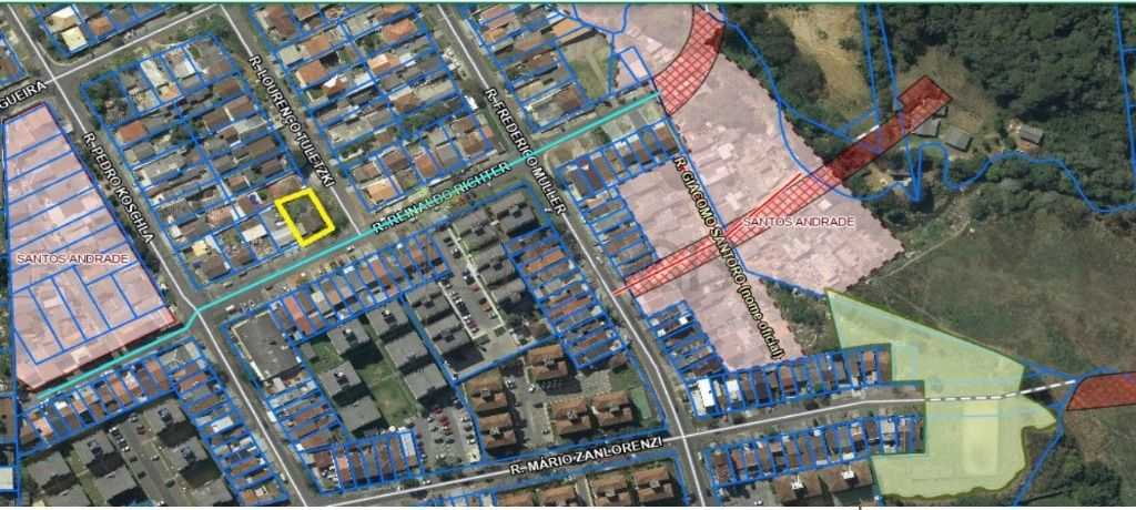 Terreno Face Norte, medindo 17m (Rua Reinaldo Ritcher) x25m (Rua Lourenço Tuletski), adequado para construção de sobrados.
